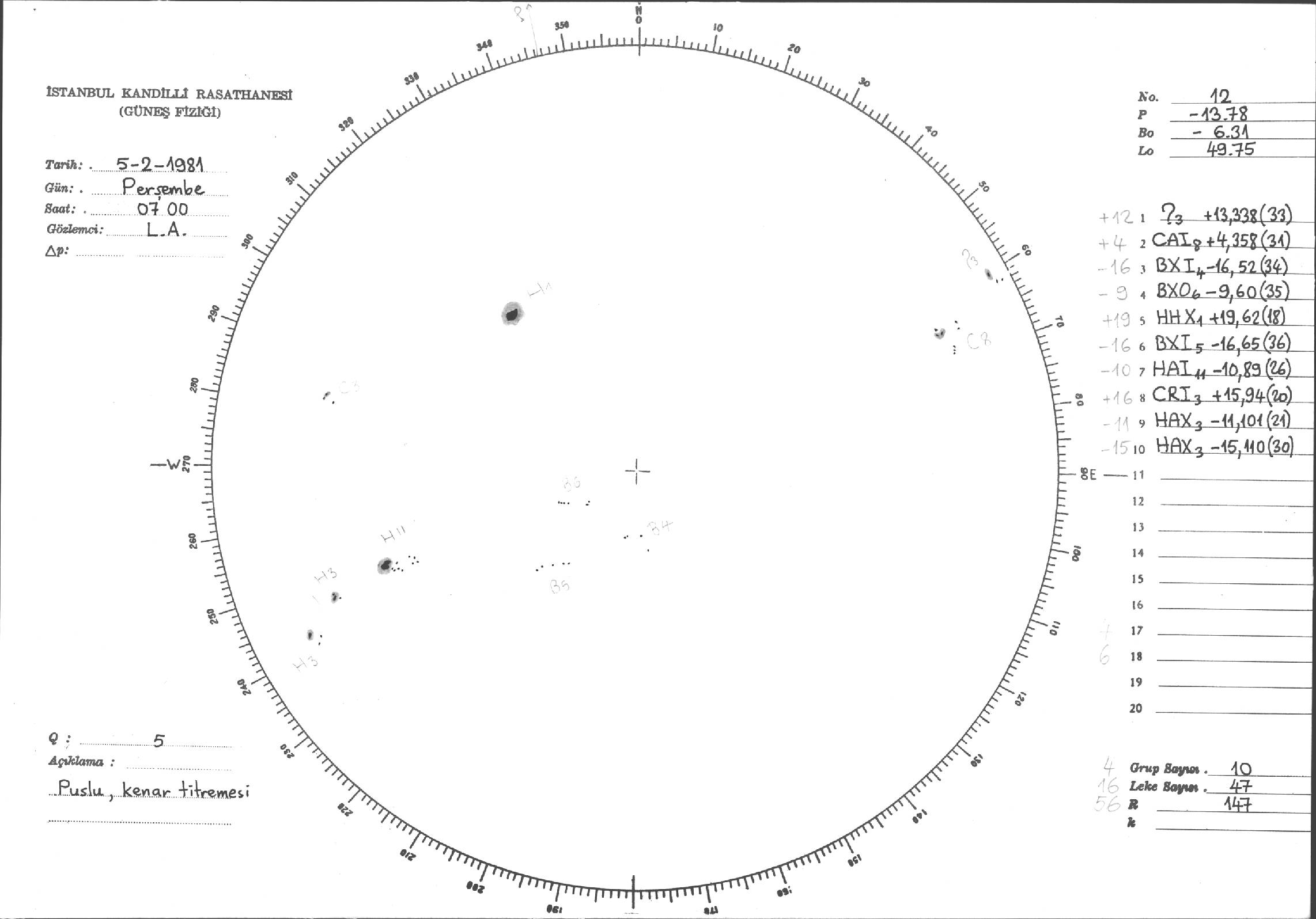 Güneş Lekesi Çizimi - 05.02.1981