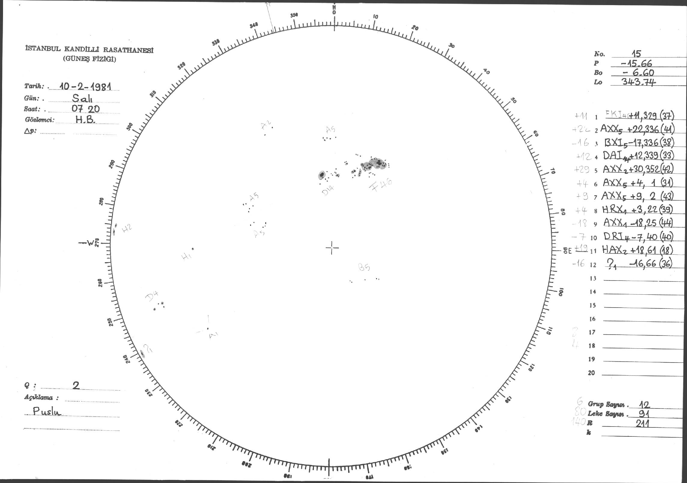 Güneş Lekesi Çizimi - 10.02.1981