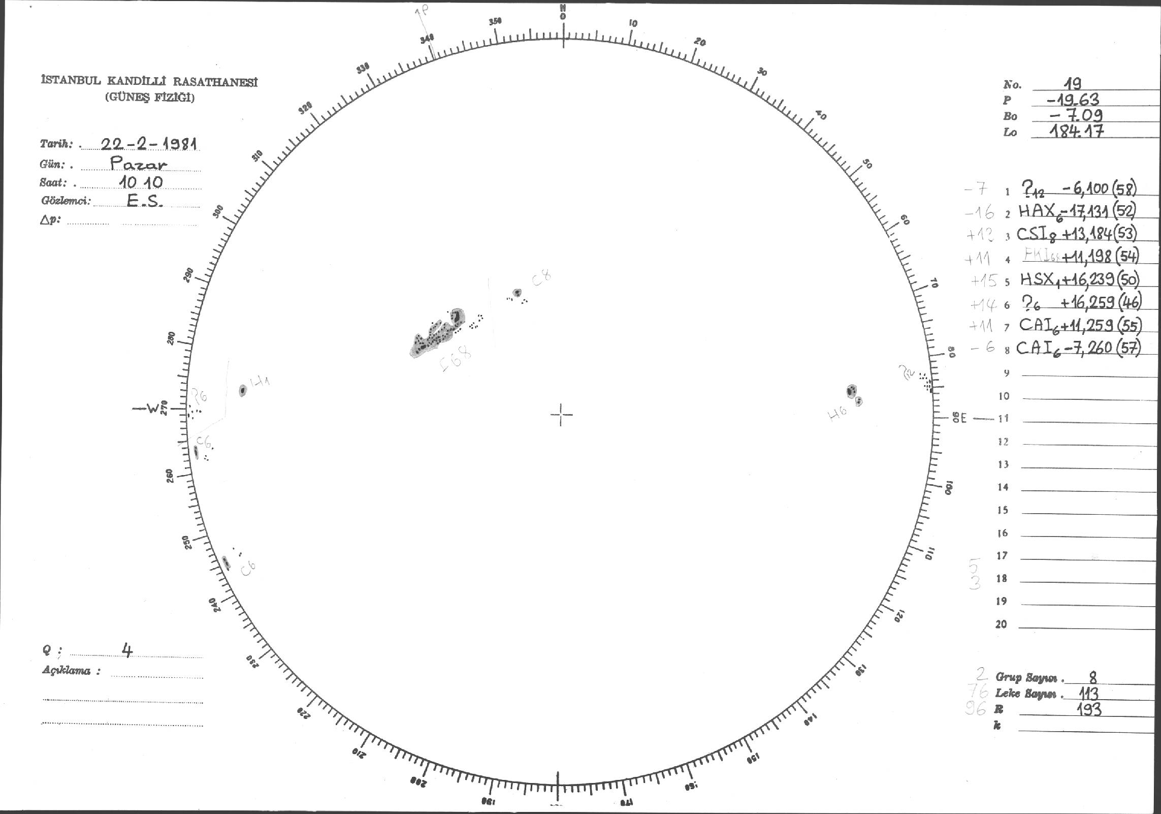Güneş Lekesi Çizimi - 22.02.1981