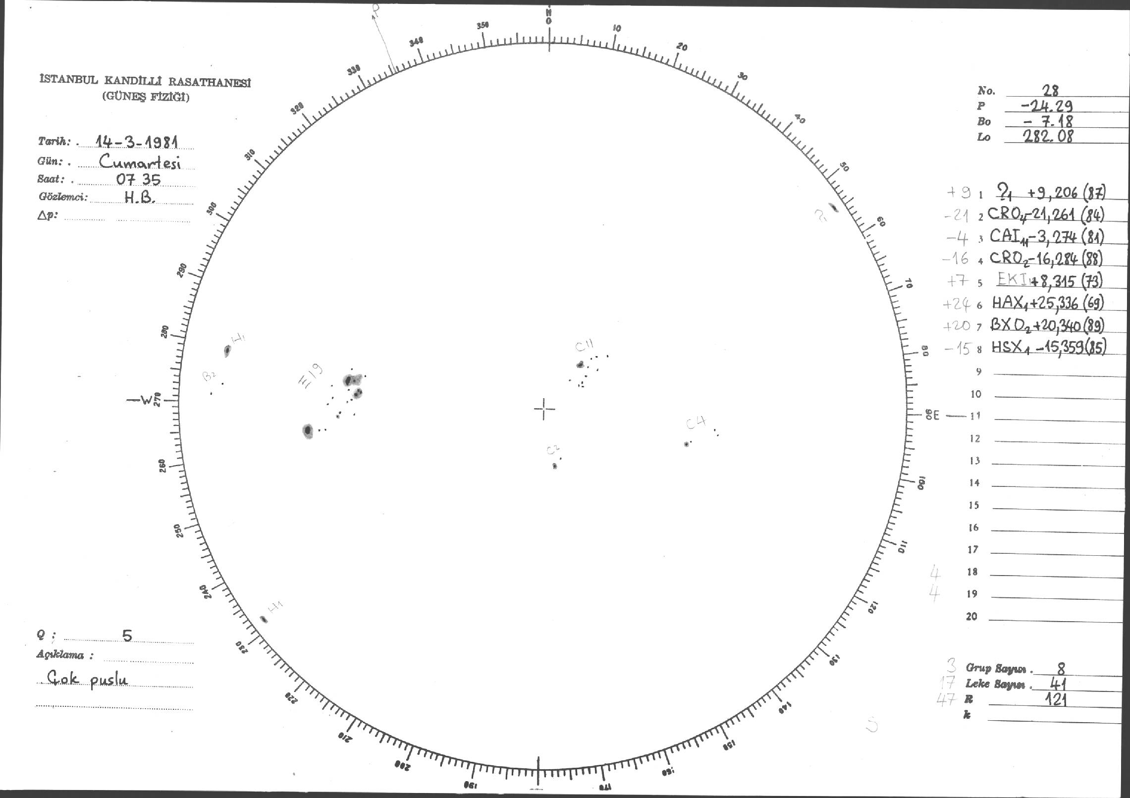 Güneş Lekesi Çizimi - 14.03.1981