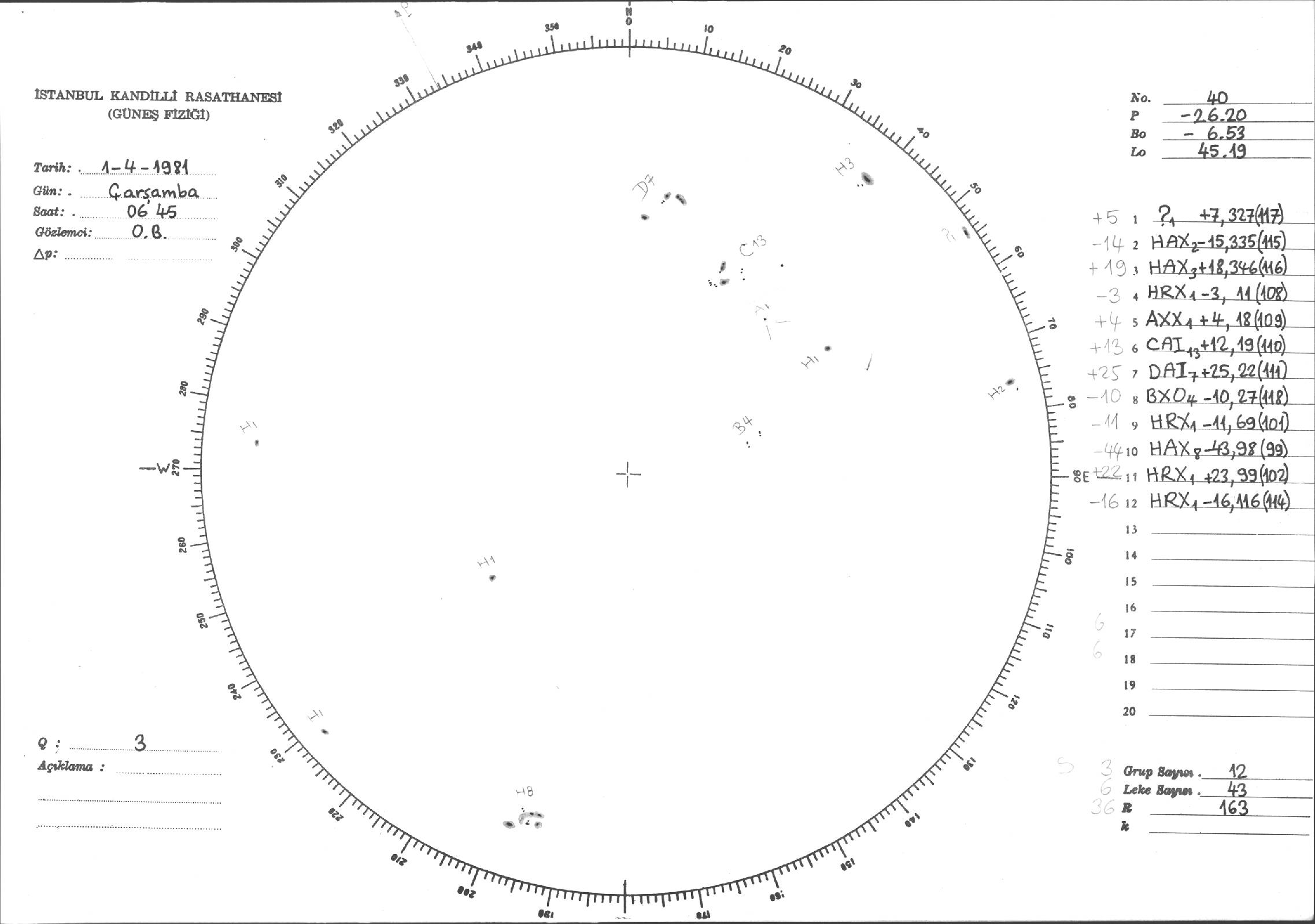 Güneş Lekesi Çizimi - 01.04.1981