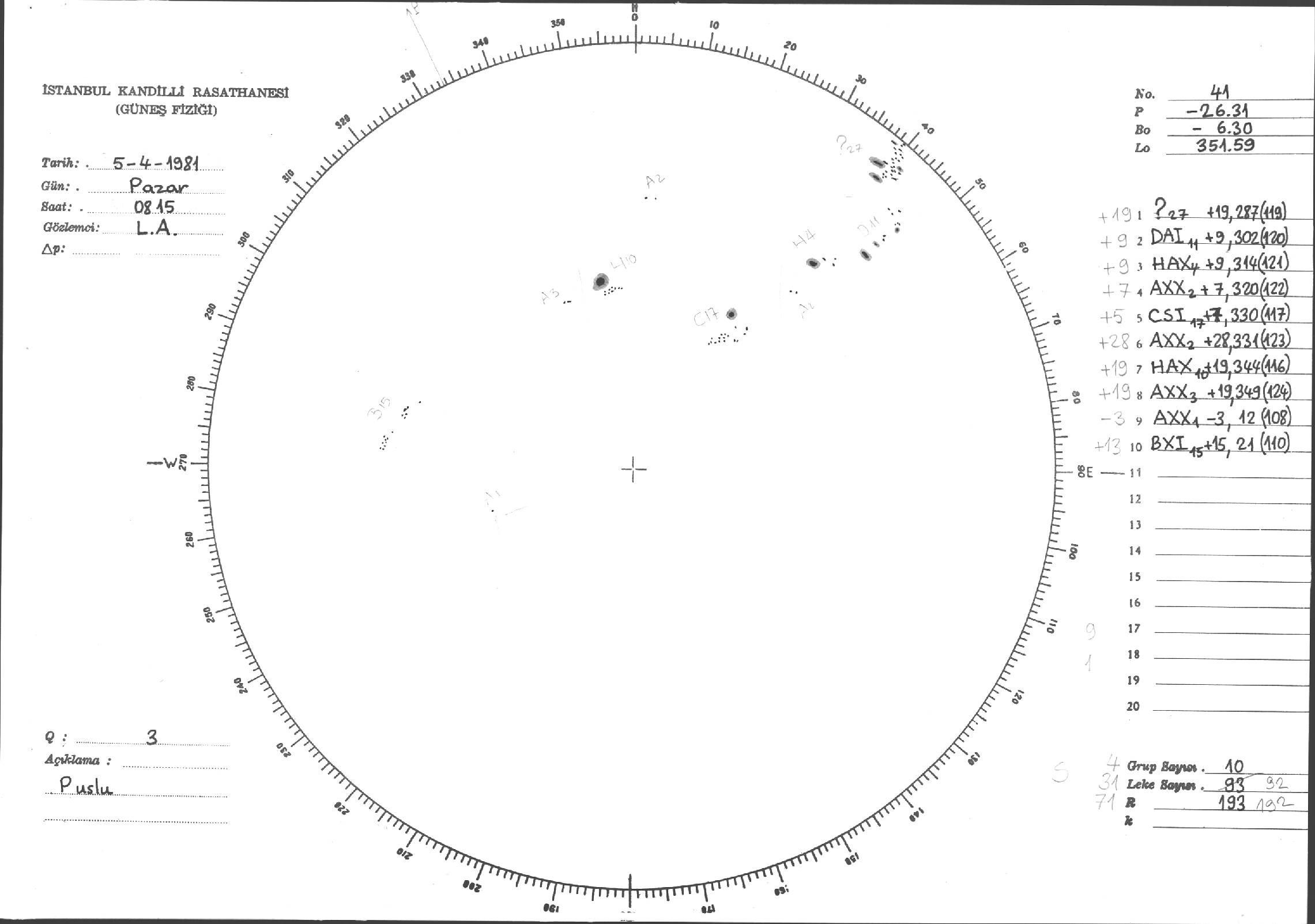 Güneş Lekesi Çizimi - 05.04.1981