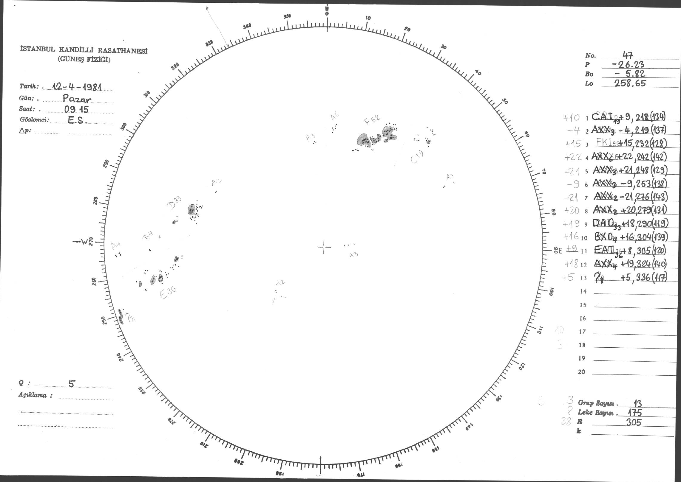 Güneş Lekesi Çizimi - 12.04.1981