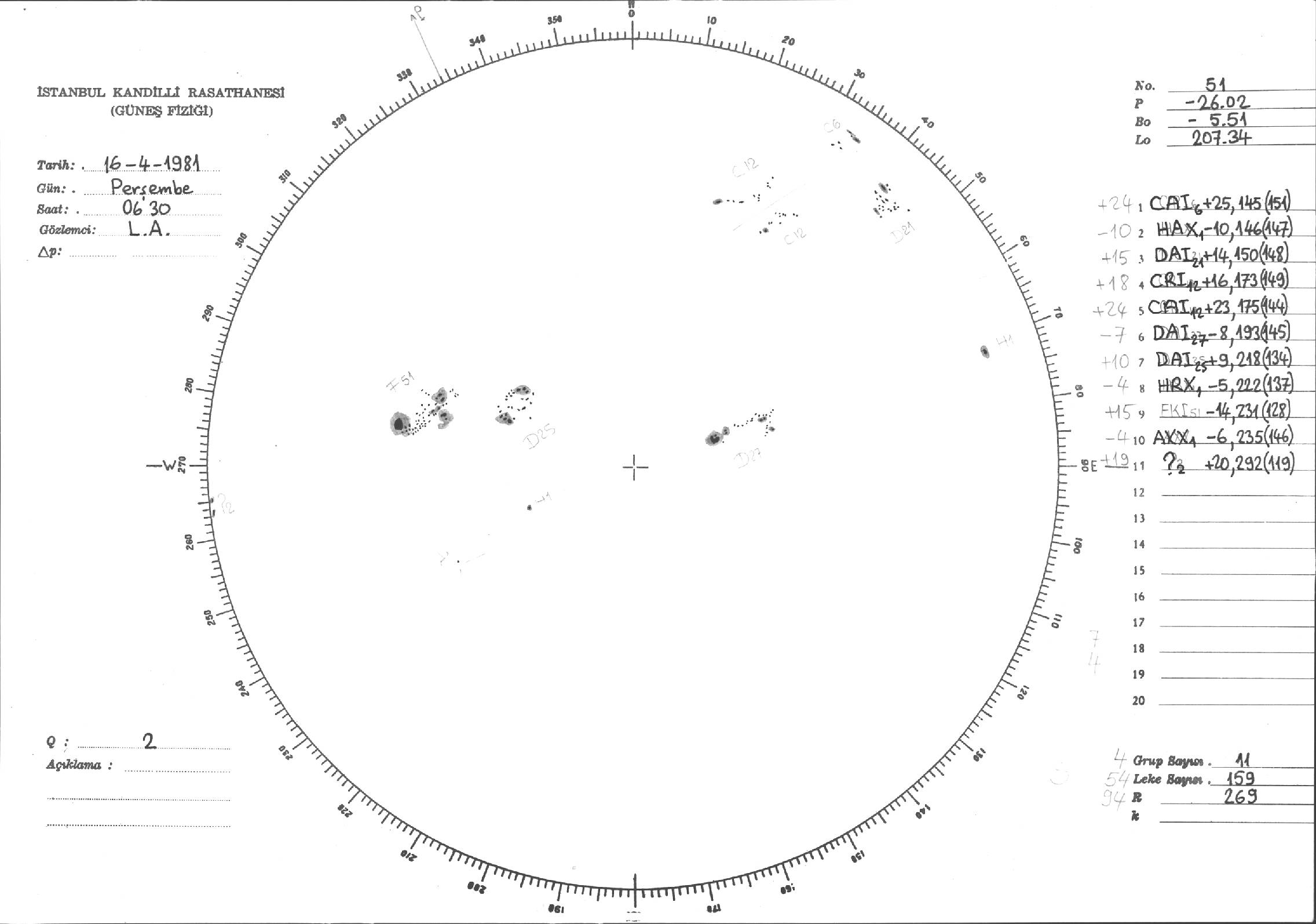Güneş Lekesi Çizimi - 16.04.1981
