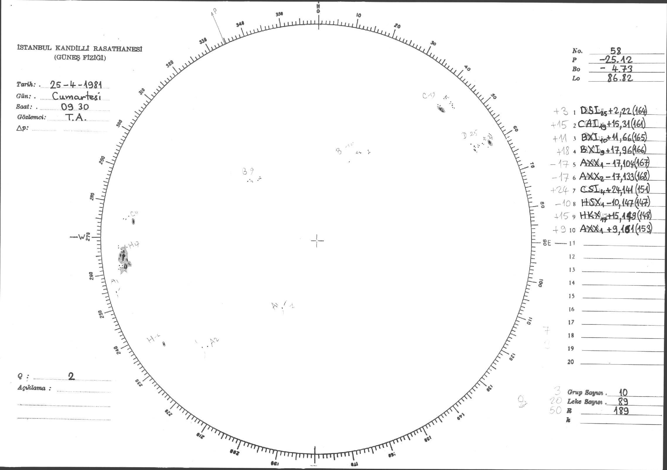 Güneş Lekesi Çizimi - 25.04.1981