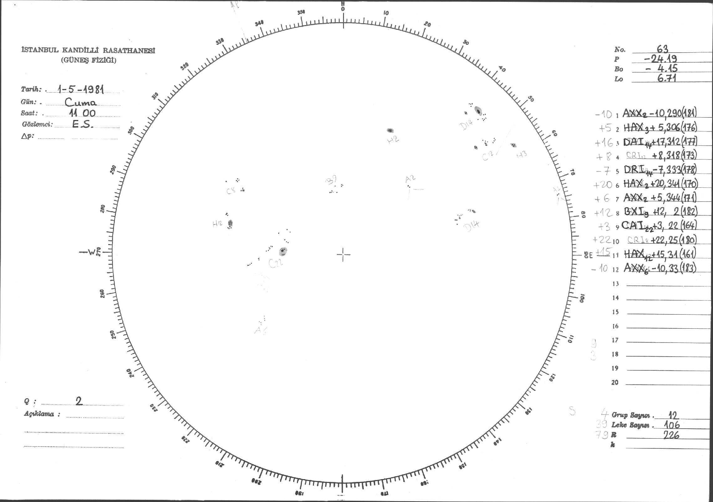 Güneş Lekesi Çizimi - 01.05.1981
