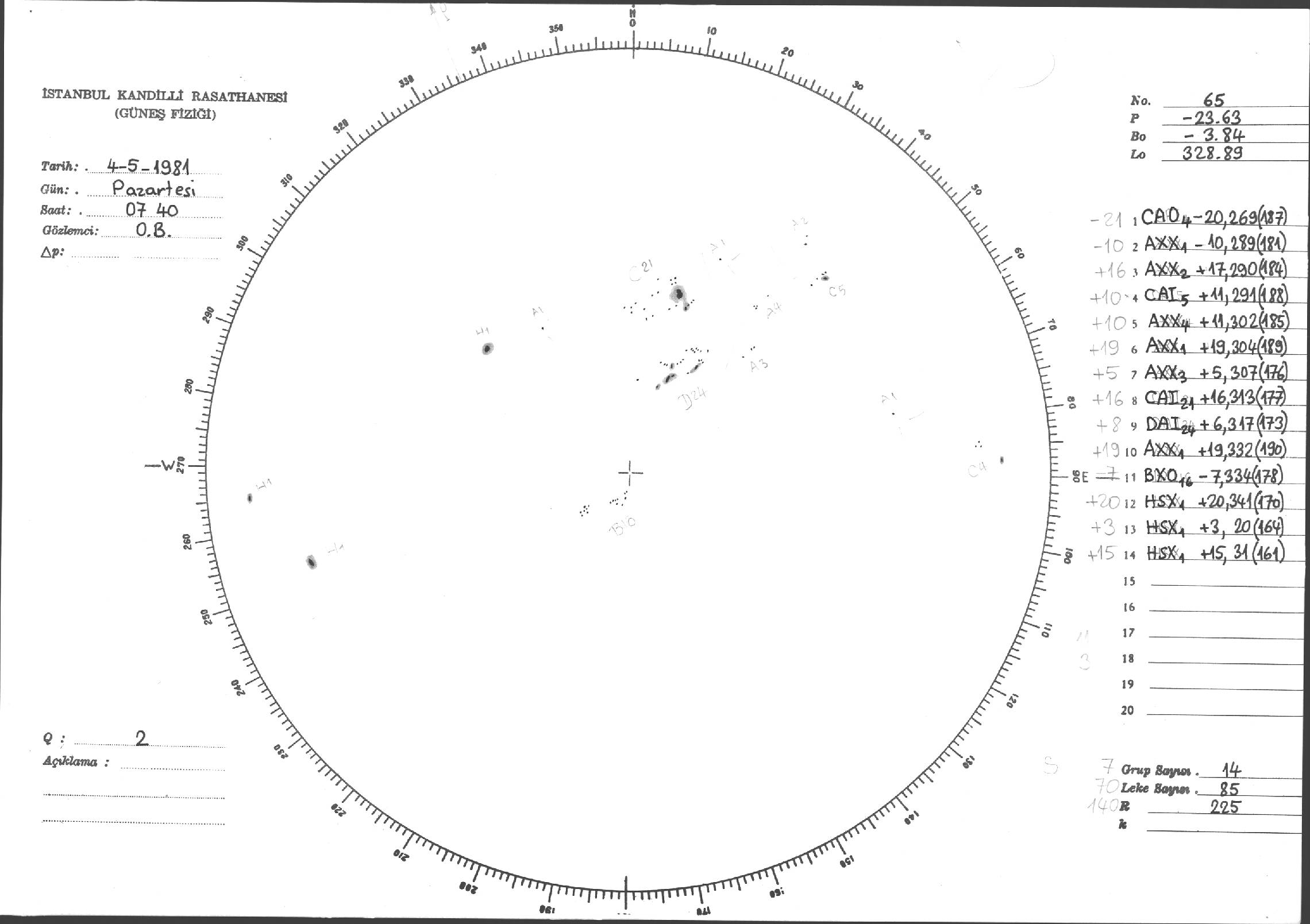 Güneş Lekesi Çizimi - 04.05.1981