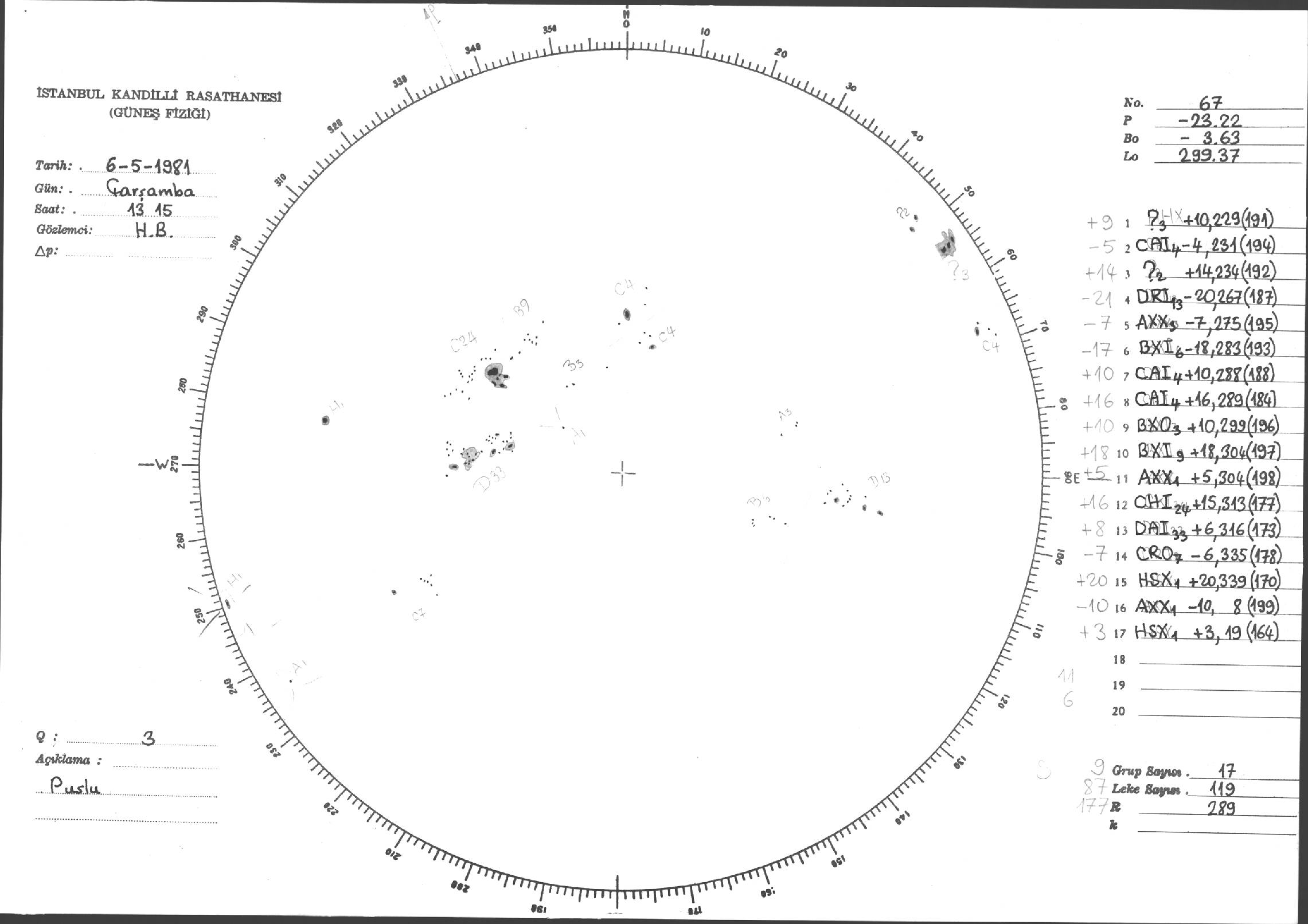 Güneş Lekesi Çizimi - 06.05.1981