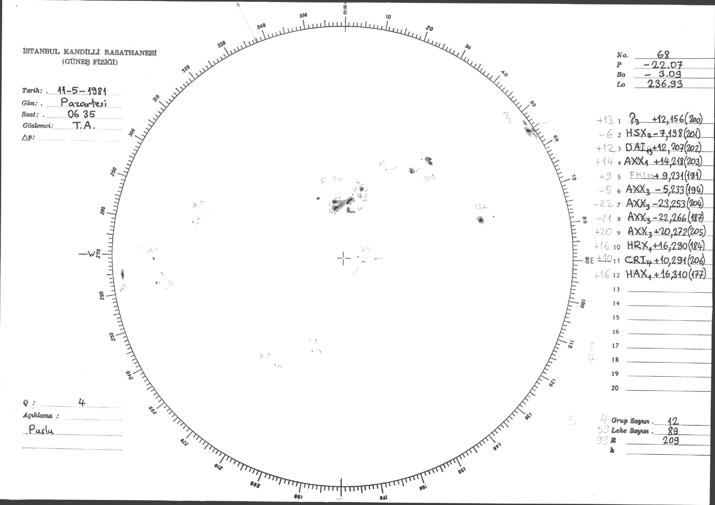 Güneş Lekesi Çizimi - 11.05.1981