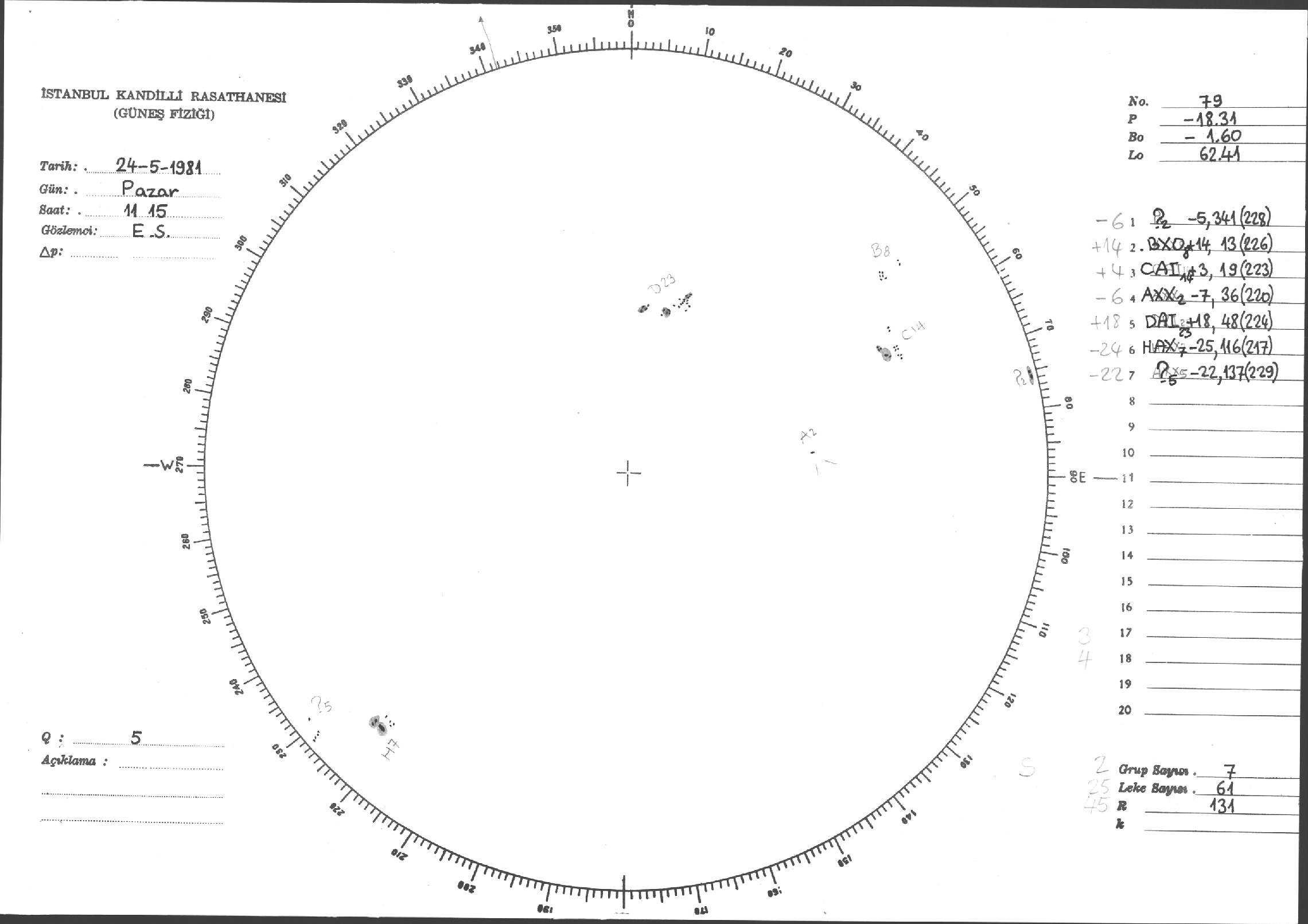 Güneş Lekesi Çizimi - 24.05.1981