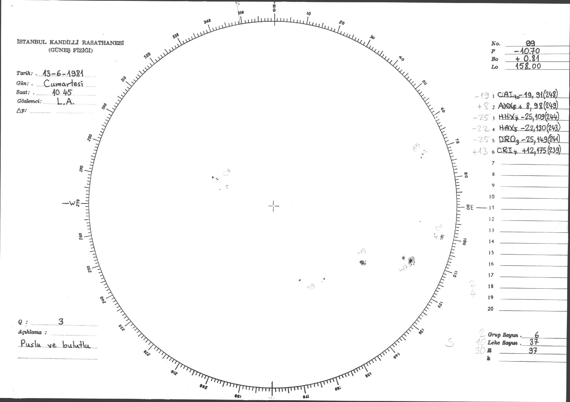 Güneş Lekesi Çizimi - 13.06.1981