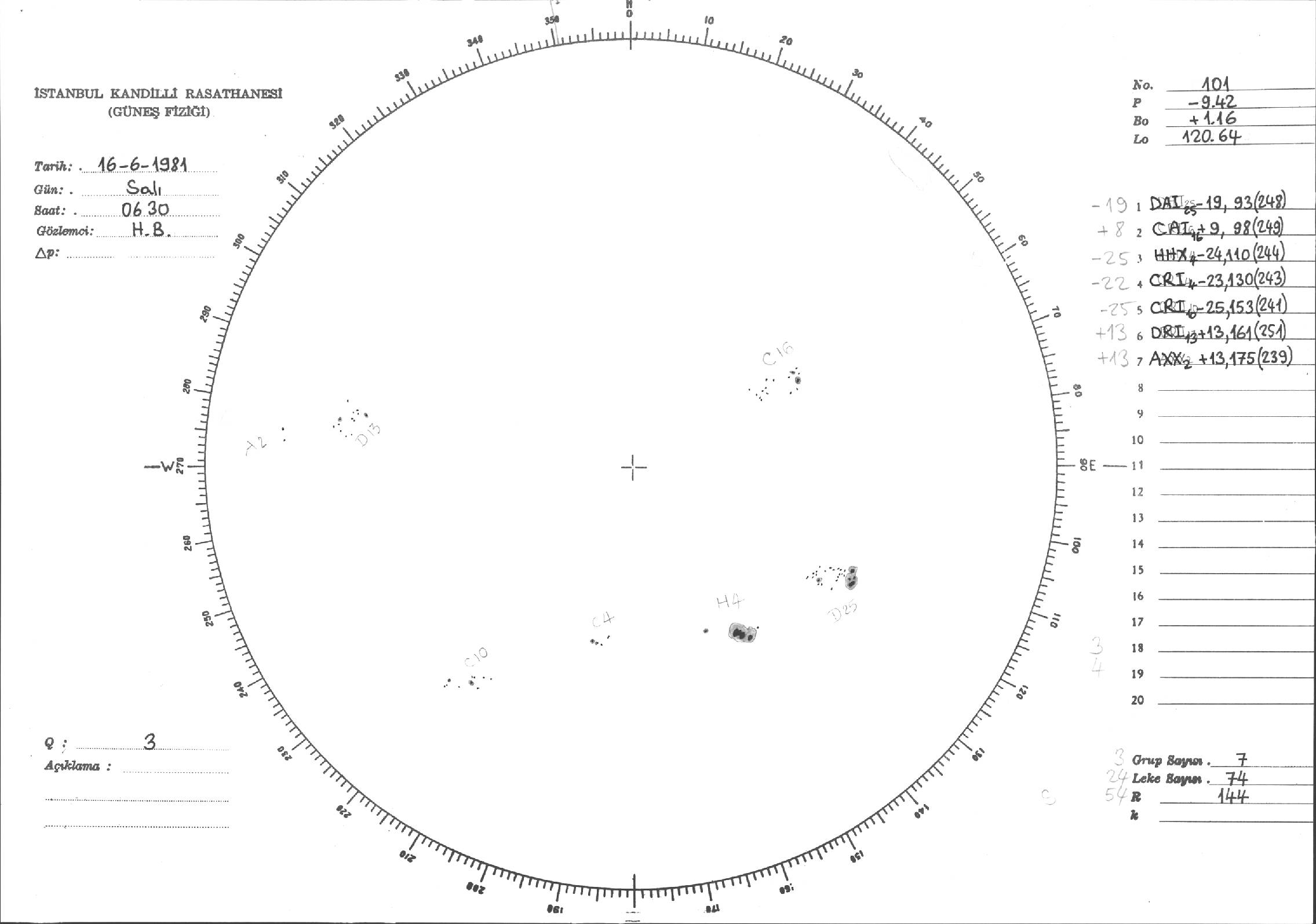 Güneş Lekesi Çizimi - 16.06.1981