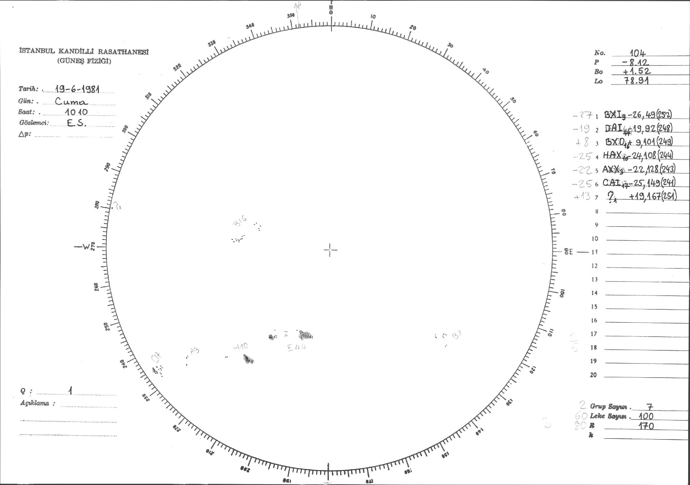 Güneş Lekesi Çizimi - 19.06.1981