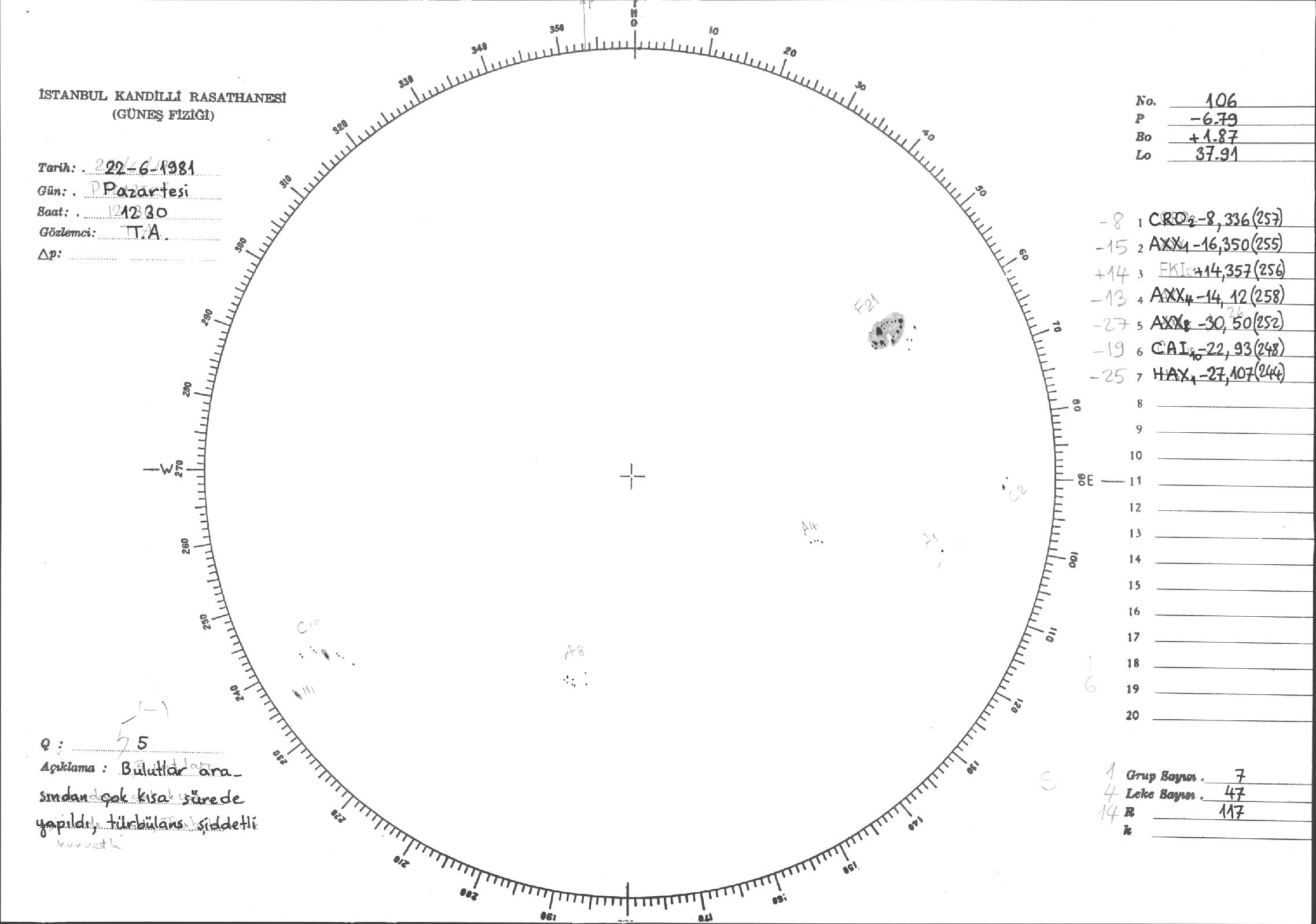 Güneş Lekesi Çizimi - 22.06.1981