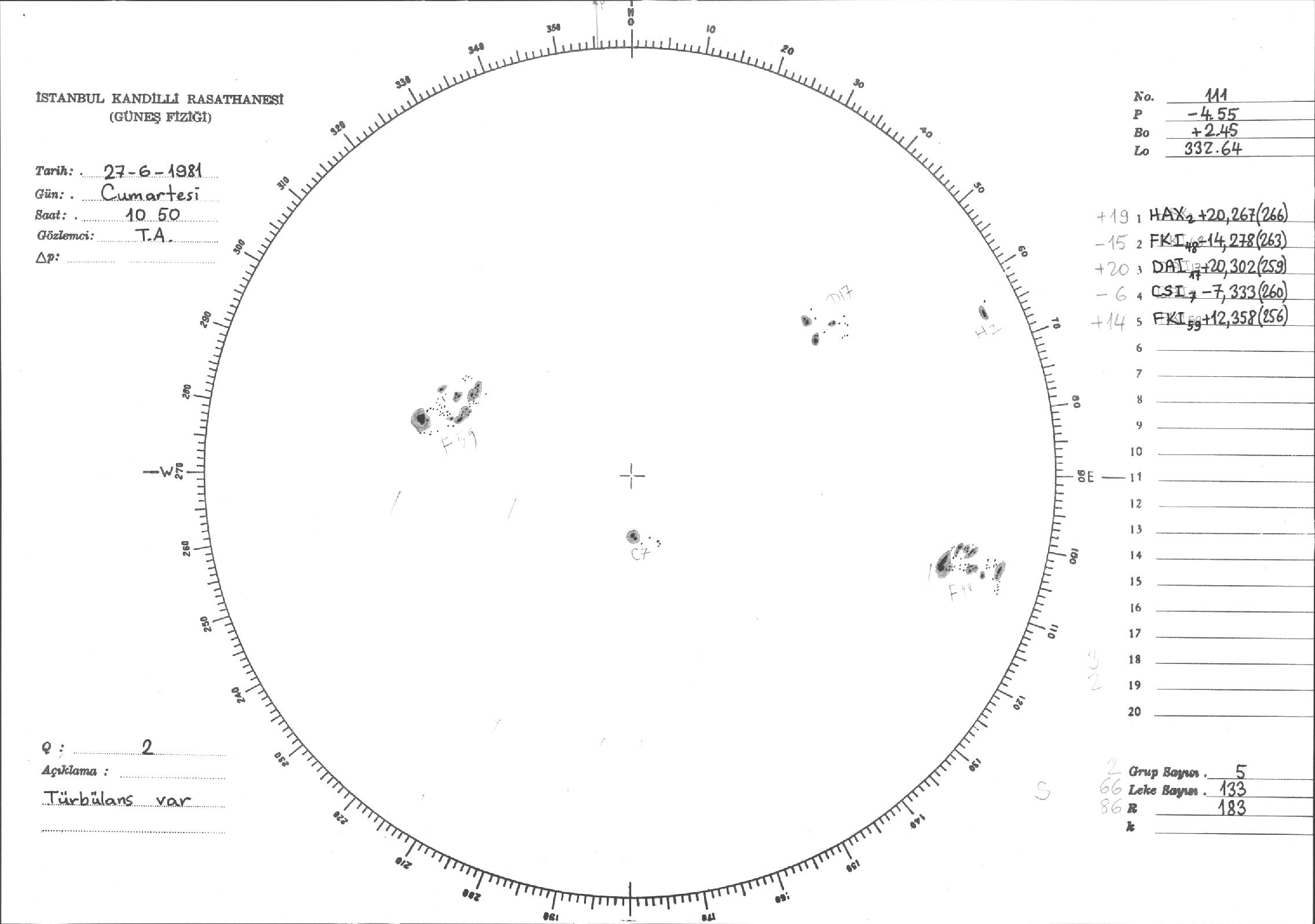 Güneş Lekesi Çizimi - 27.06.1981