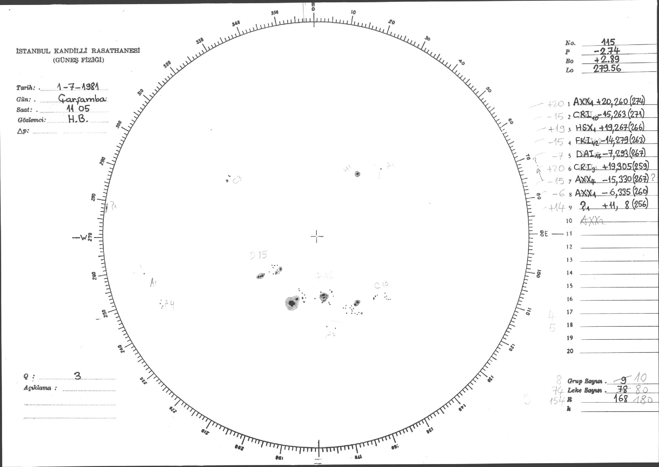 Güneş Lekesi Çizimi - 01.07.1981