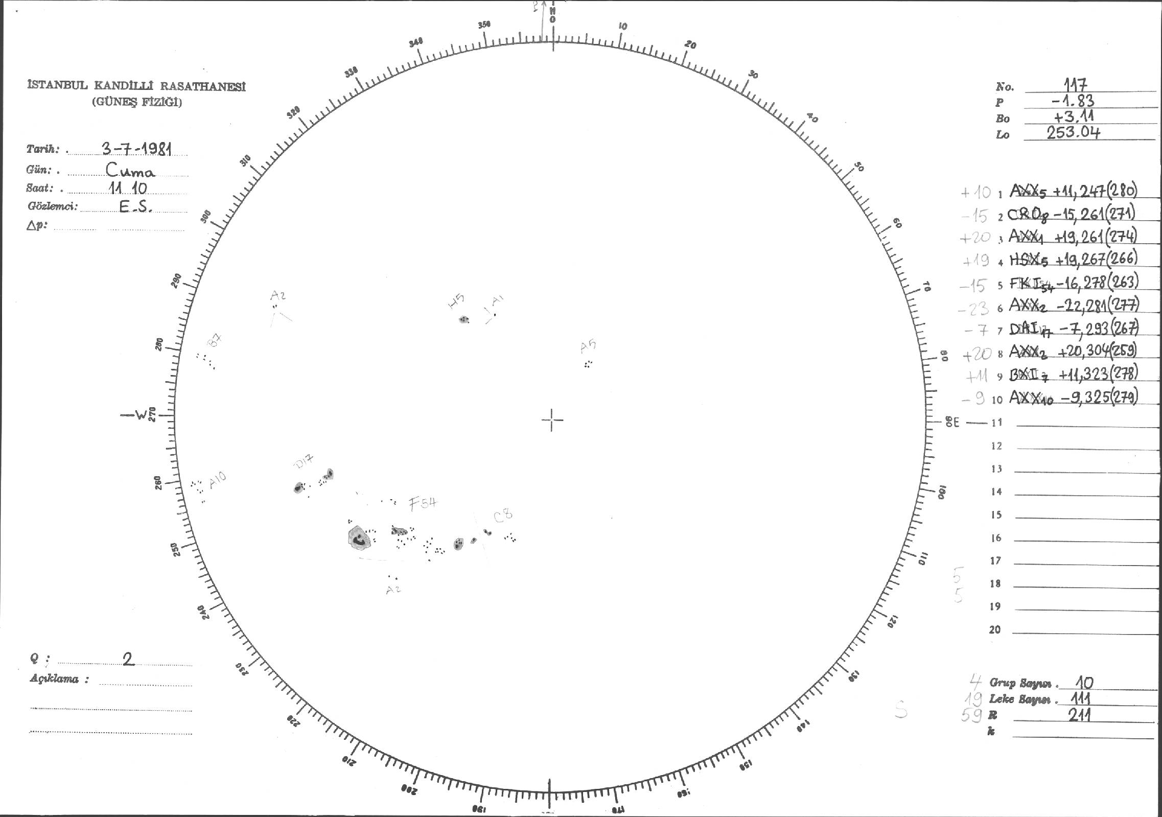 Güneş Lekesi Çizimi - 03.07.1981
