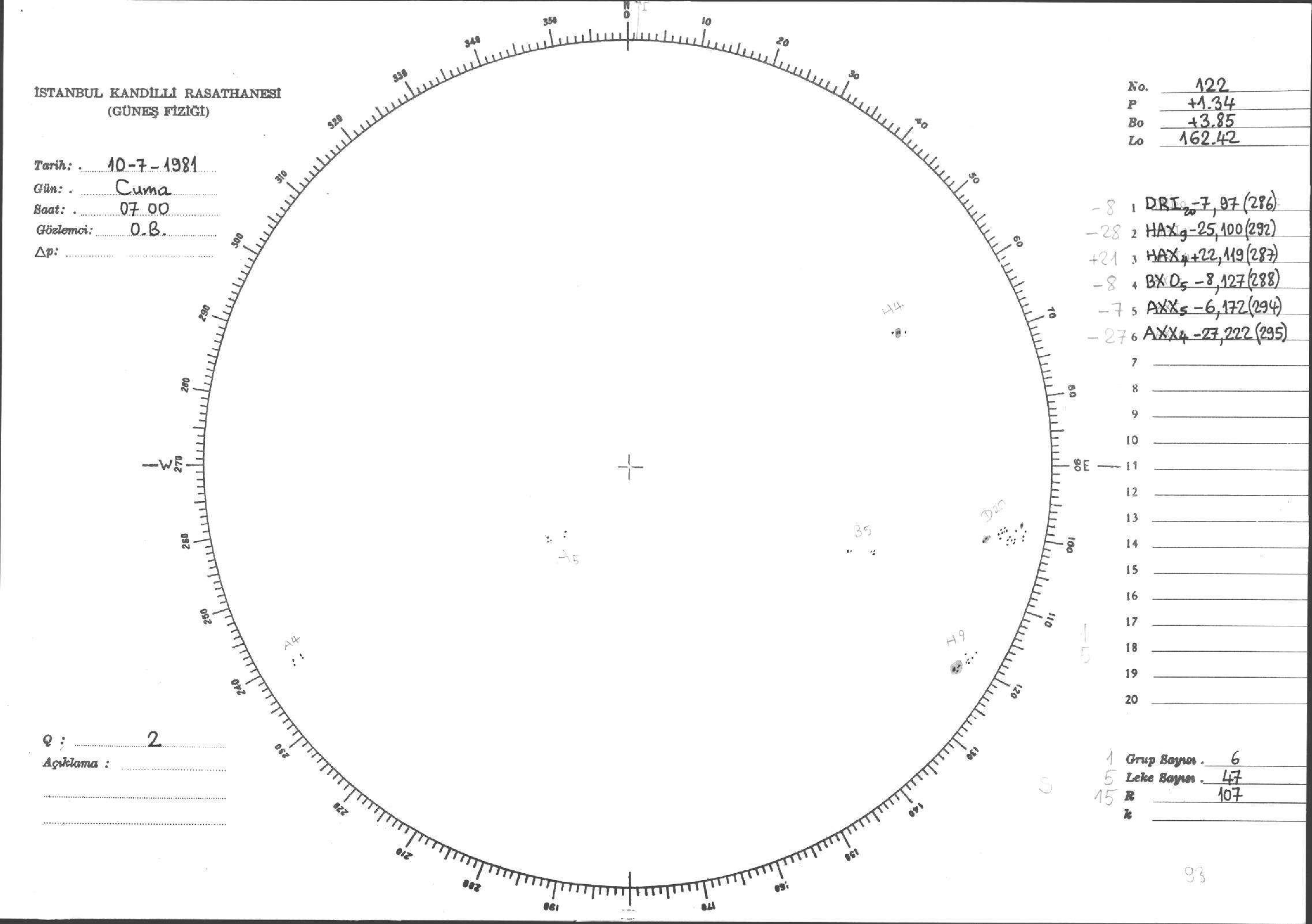Güneş Lekesi Çizimi - 10.07.1981