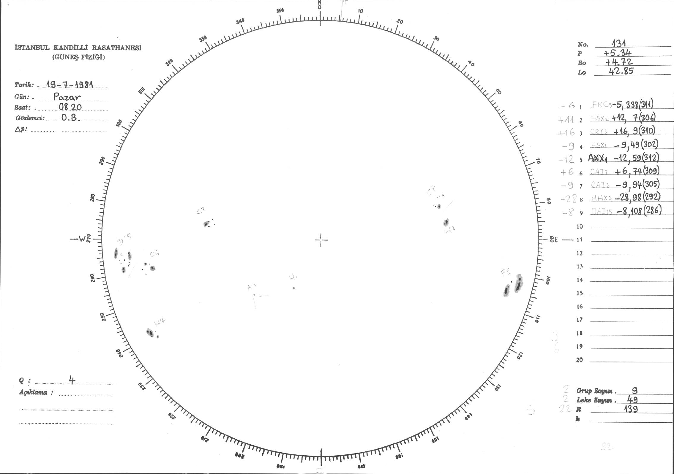 Güneş Lekesi Çizimi - 19.07.1981