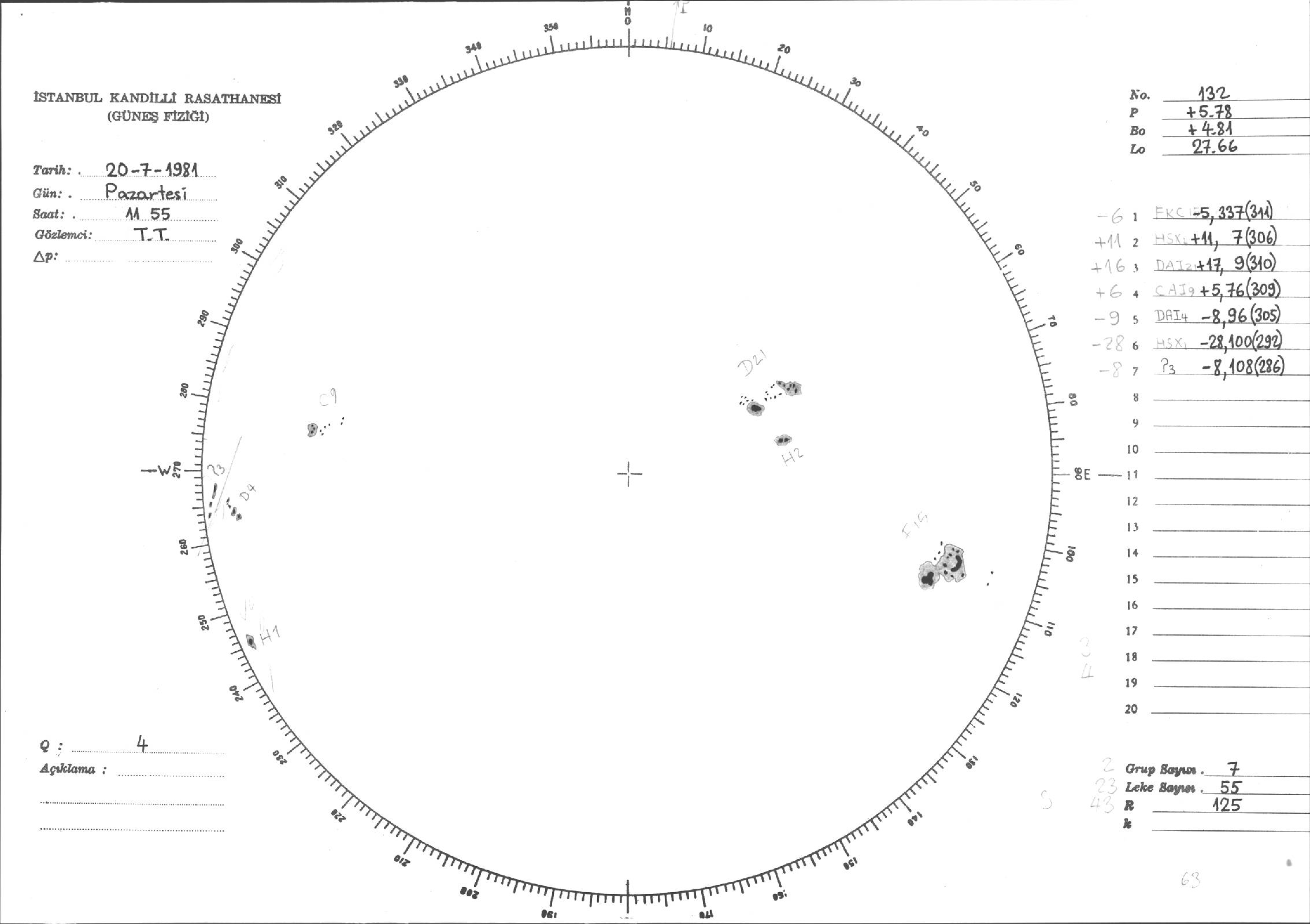 Güneş Lekesi Çizimi - 20.07.1981