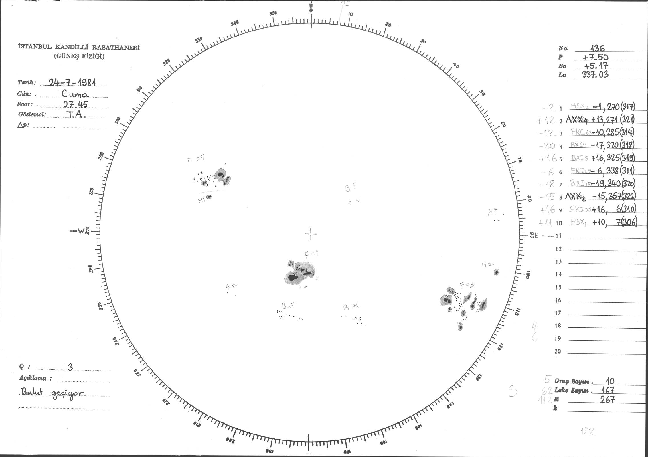 Güneş Lekesi Çizimi - 24.07.1981