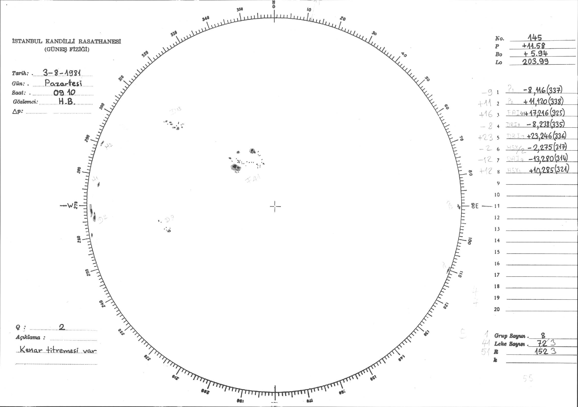 Güneş Lekesi Çizimi - 03.08.1981