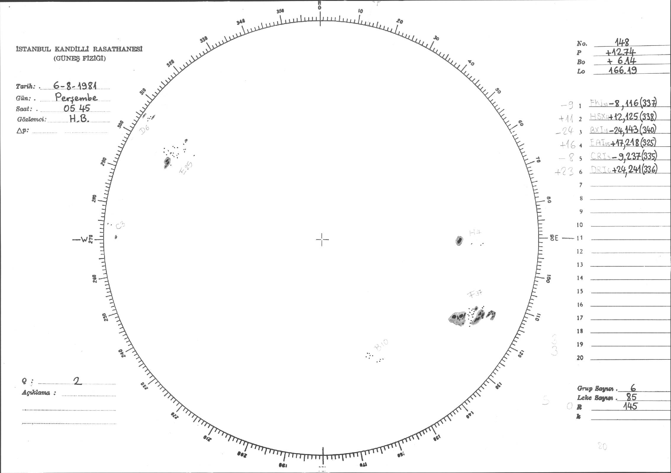 Güneş Lekesi Çizimi - 06.08.1981