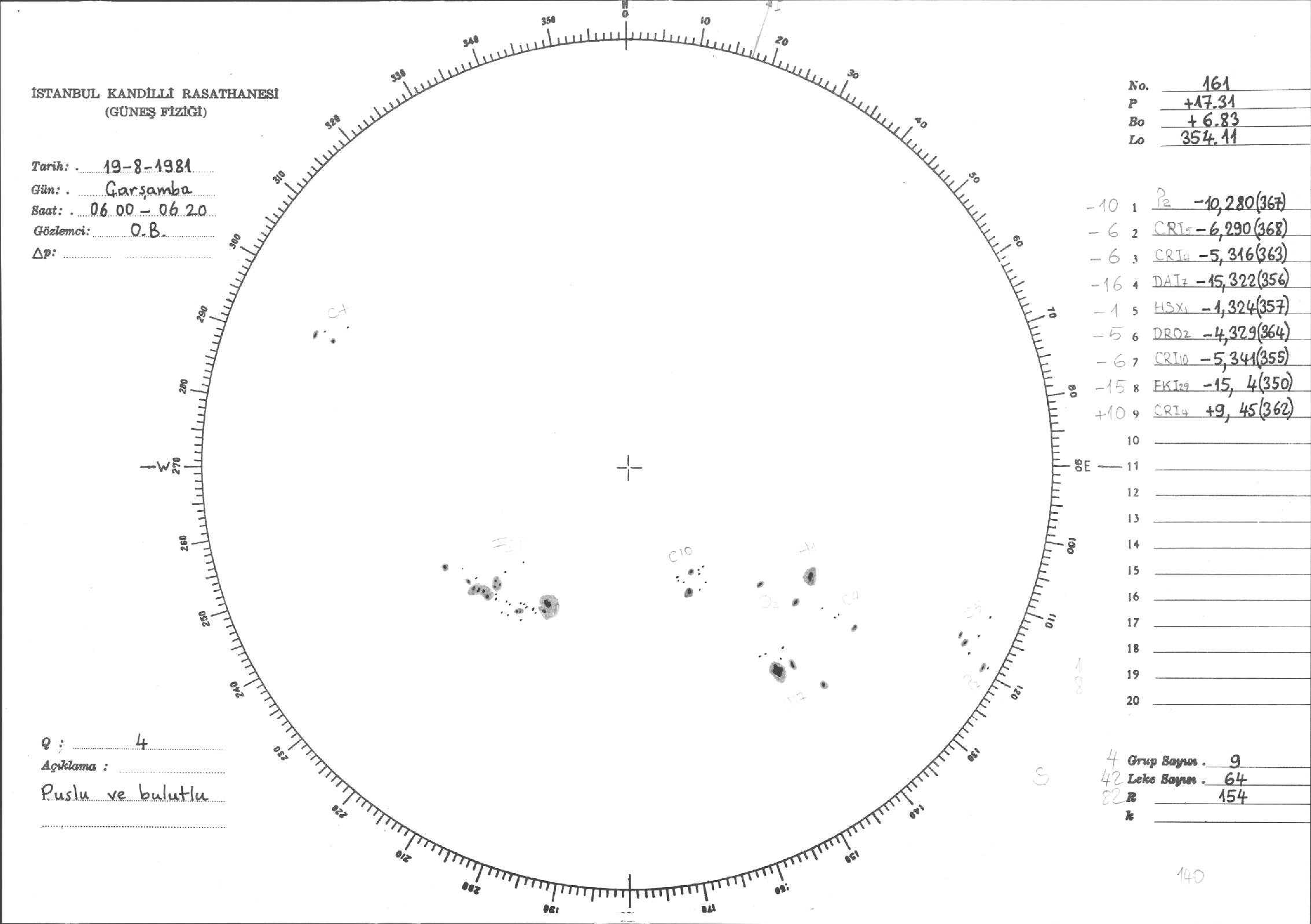 Güneş Lekesi Çizimi - 19.08.1981