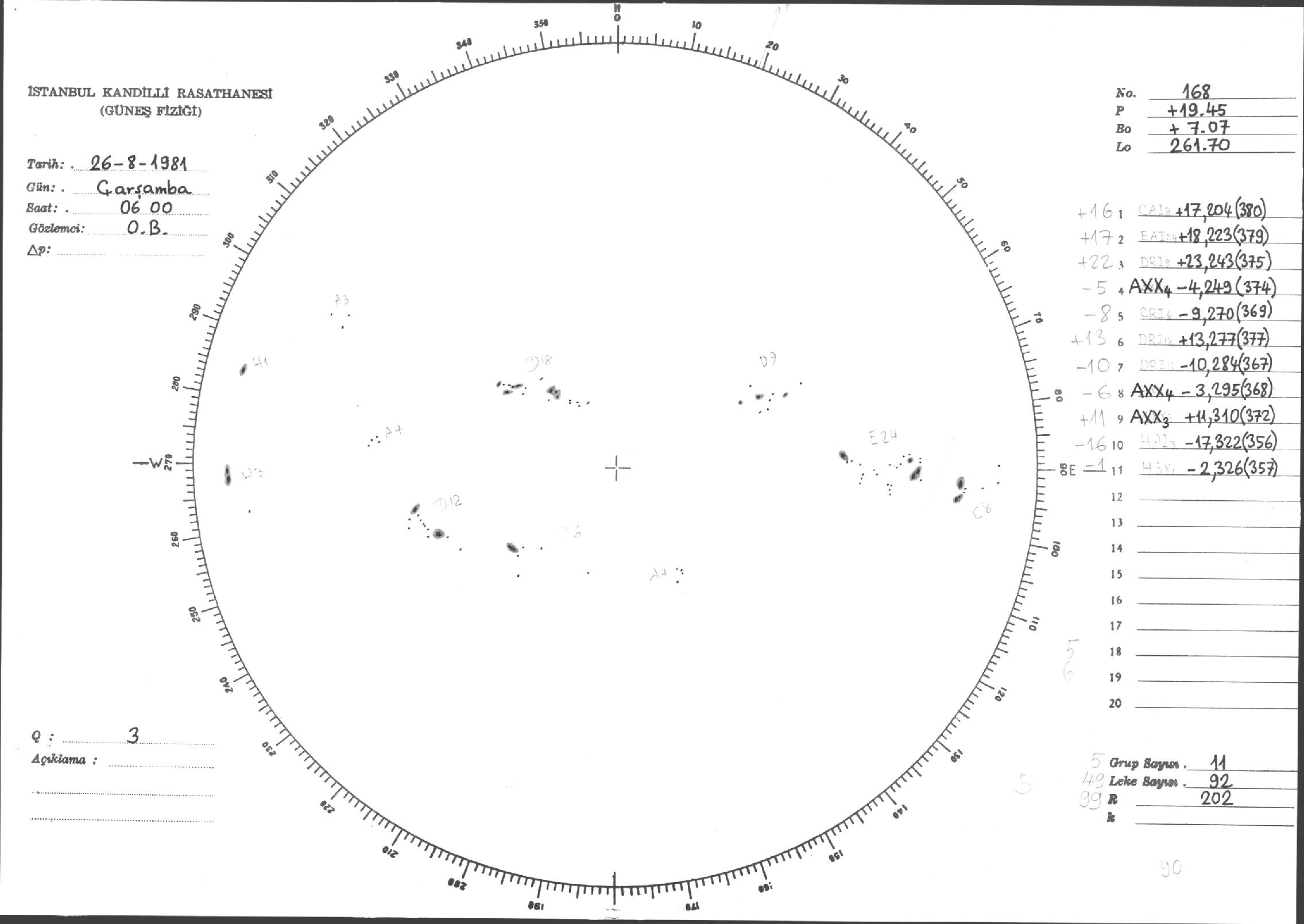Güneş Lekesi Çizimi - 26.08.1981