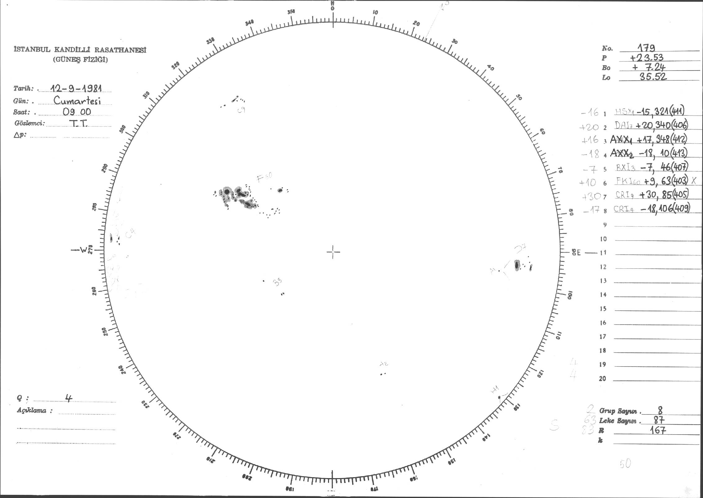 Güneş Lekesi Çizimi - 12.09.1981