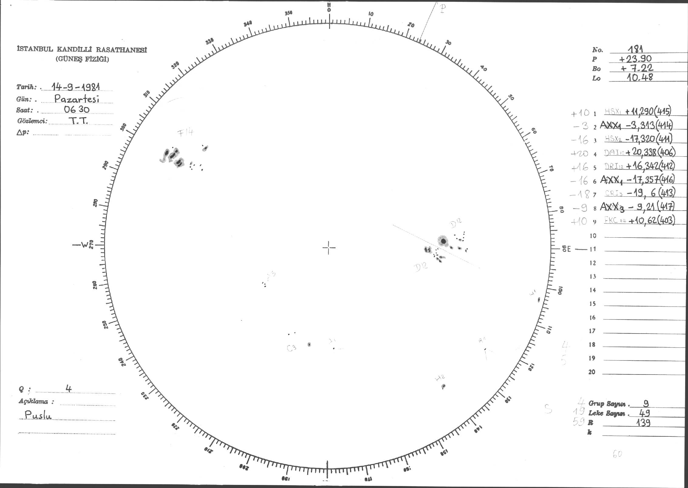Güneş Lekesi Çizimi - 14.09.1981