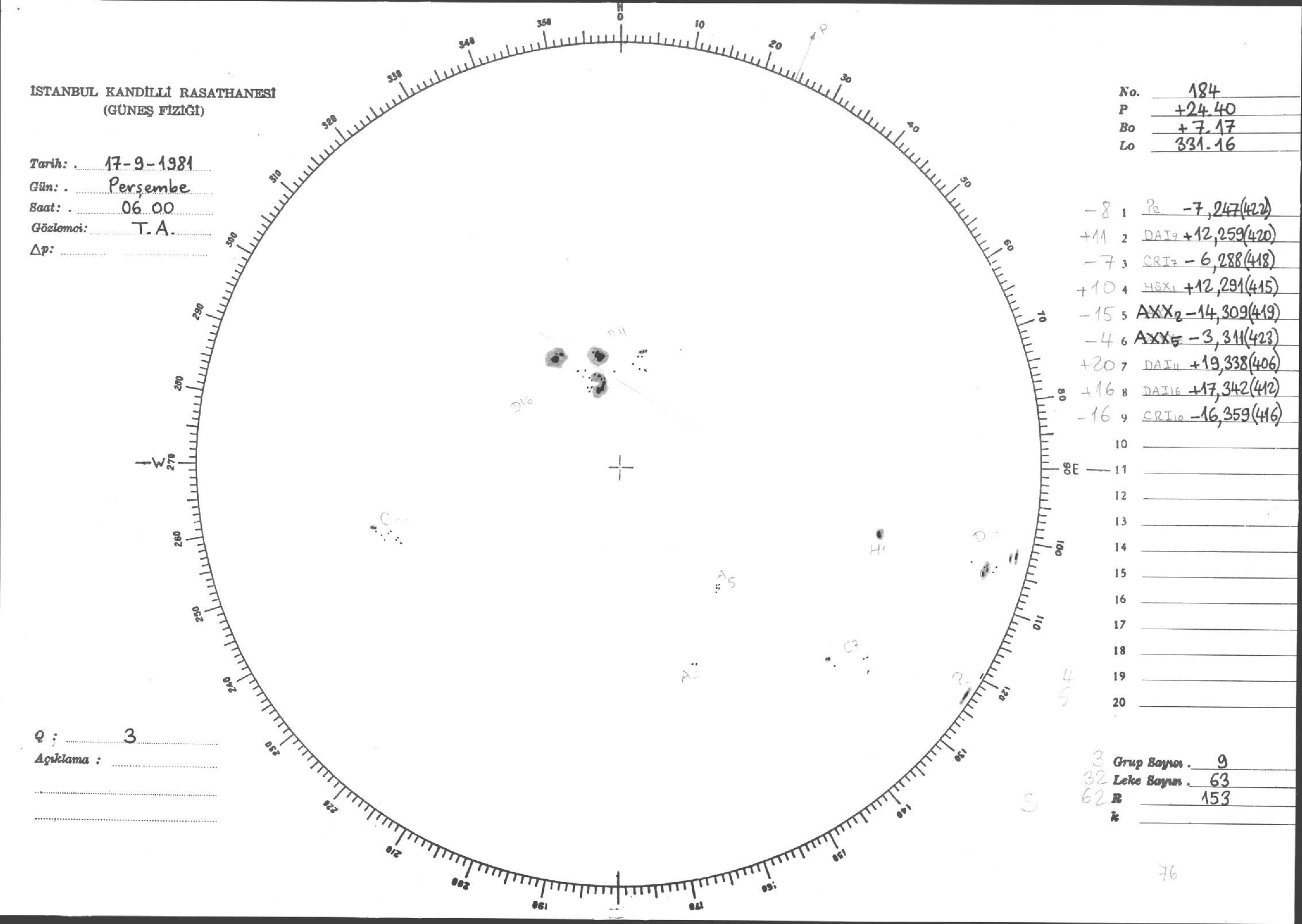 Güneş Lekesi Çizimi - 17.09.1981