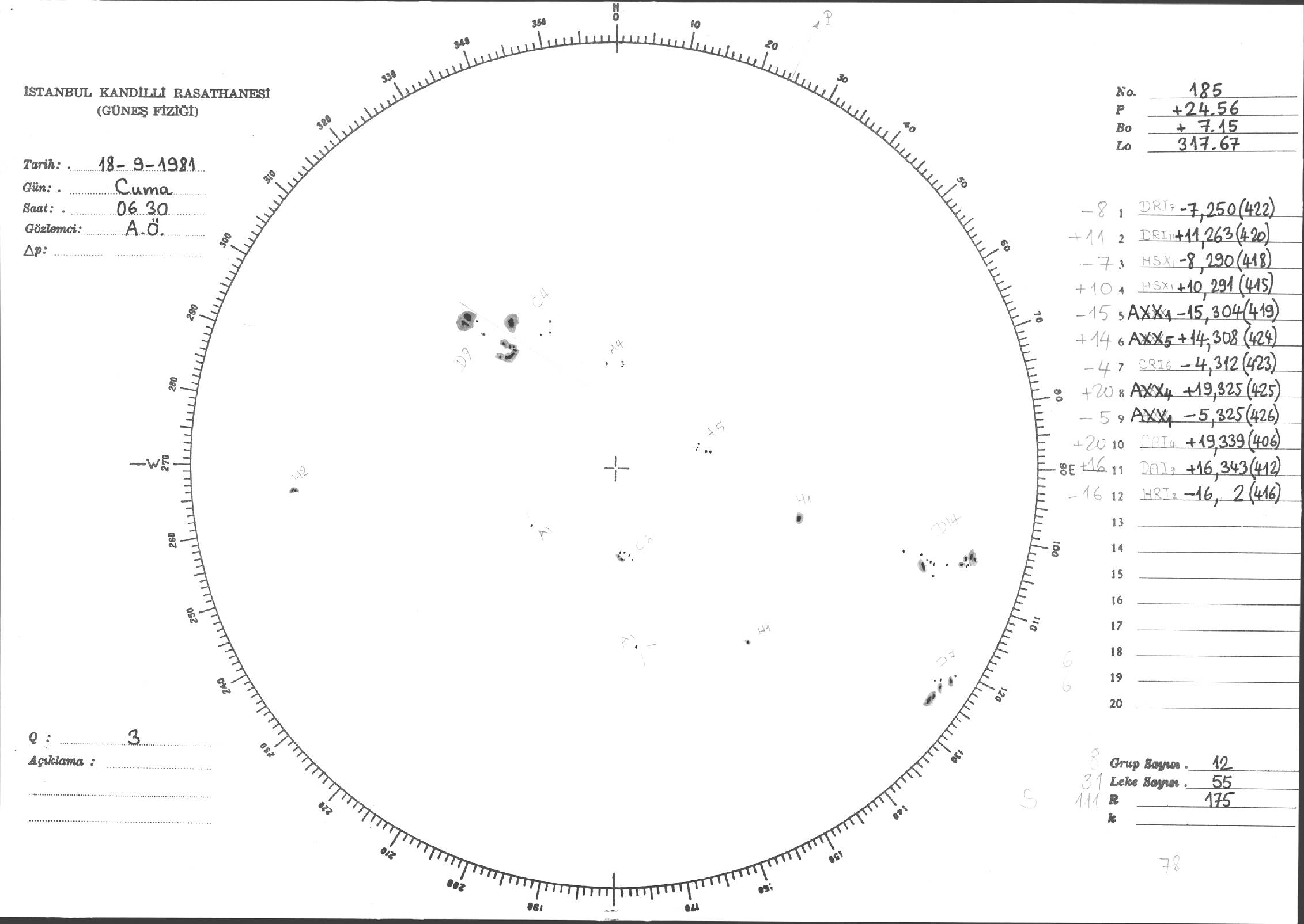 Güneş Lekesi Çizimi - 18.09.1981