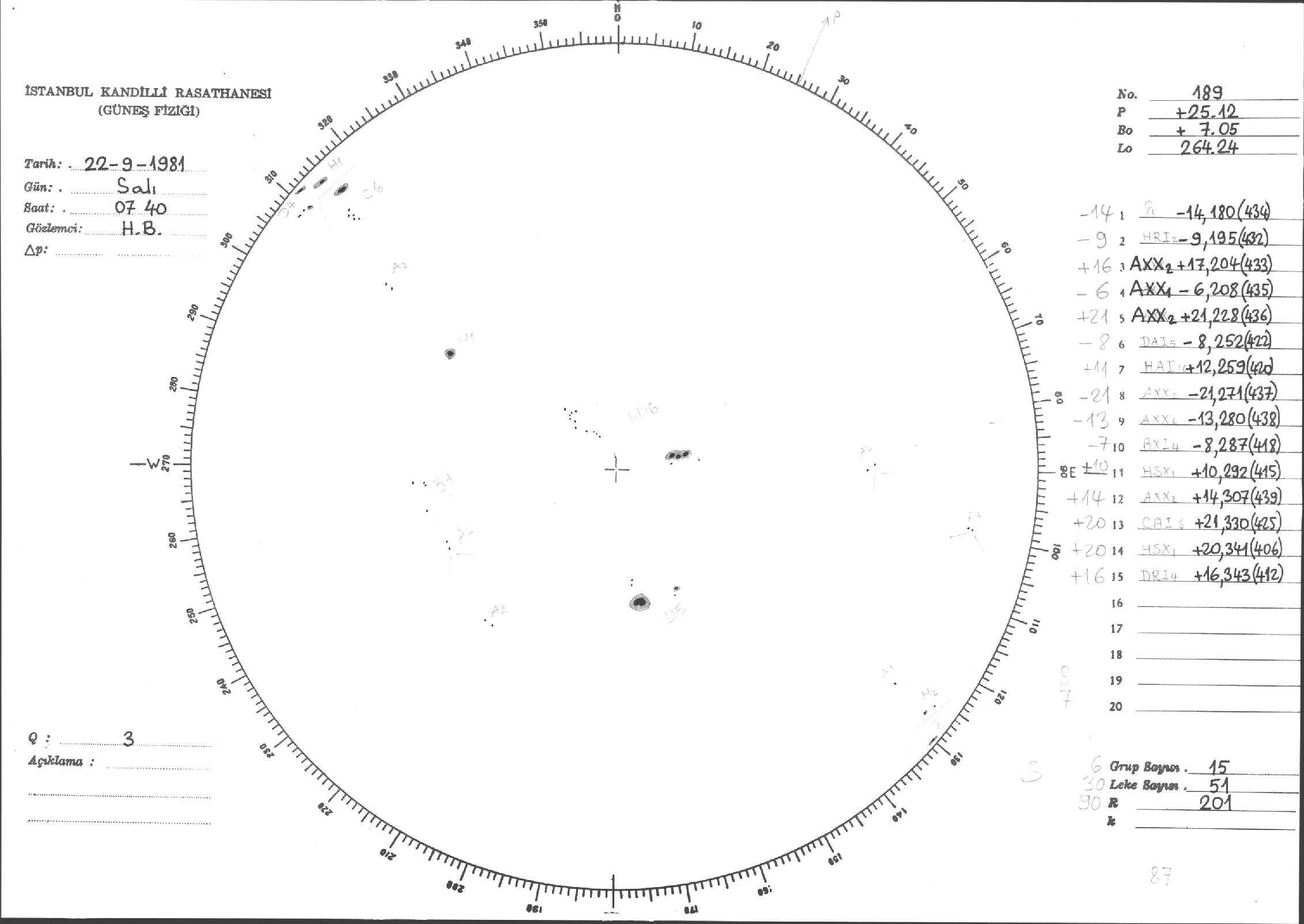 Güneş Lekesi Çizimi - 22.09.1981