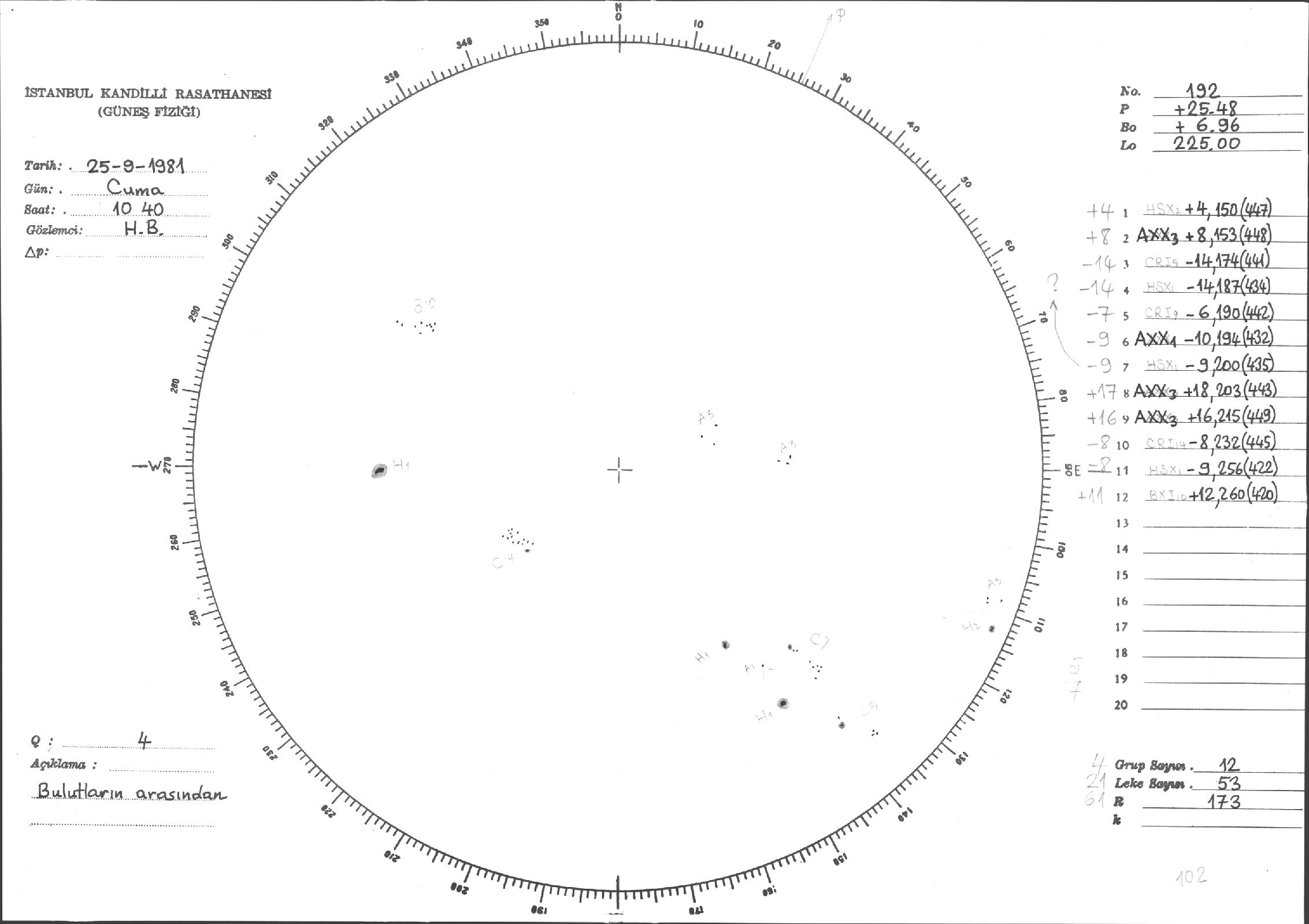 Güneş Lekesi Çizimi - 25.09.1981