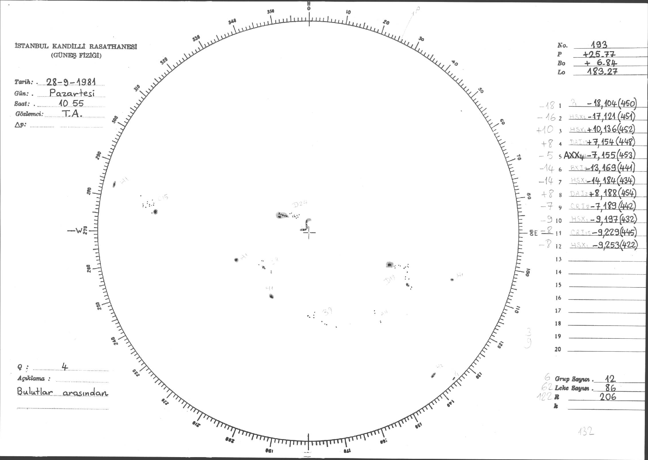 Güneş Lekesi Çizimi - 28.09.1981