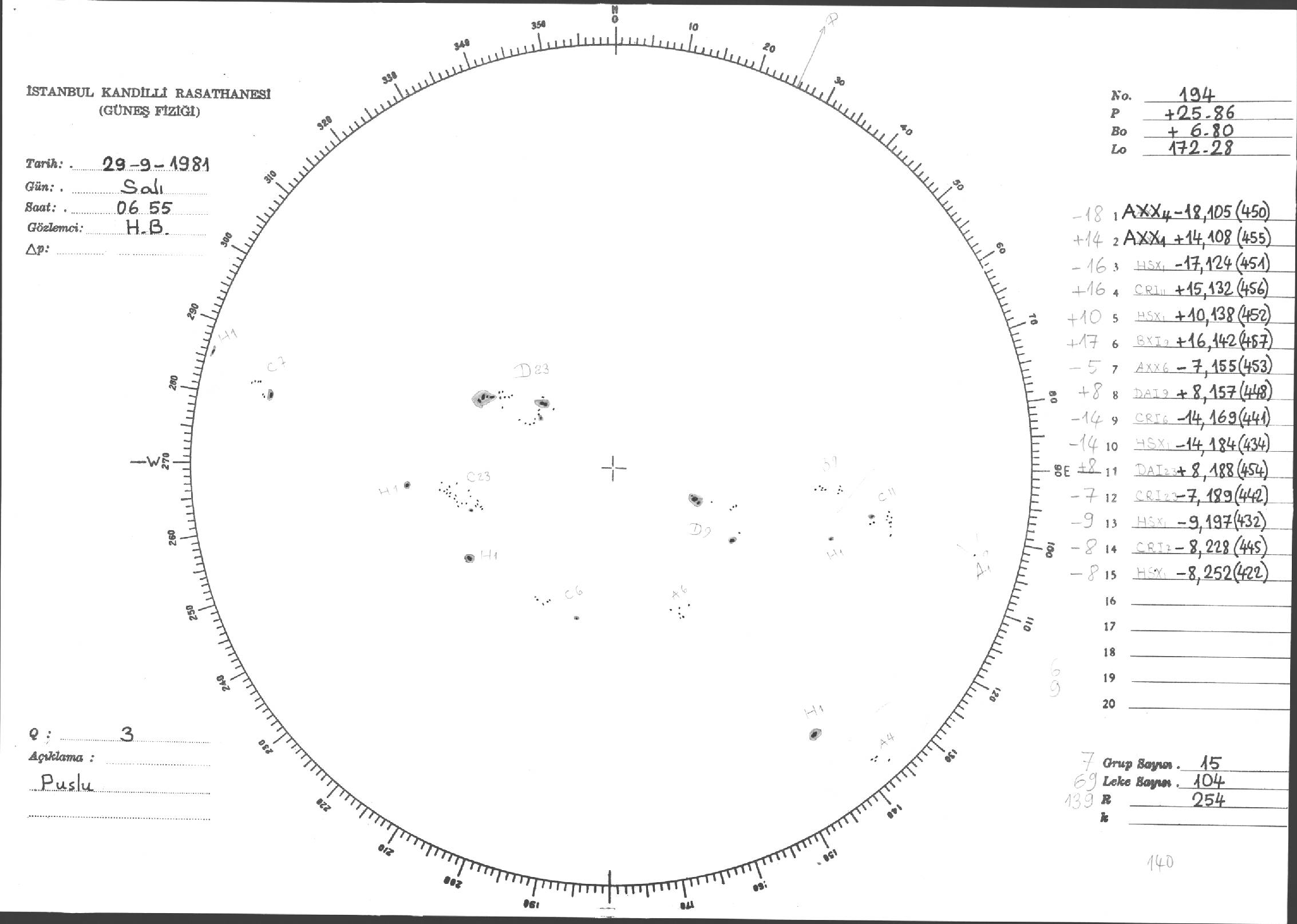 Güneş Lekesi Çizimi - 29.09.1981