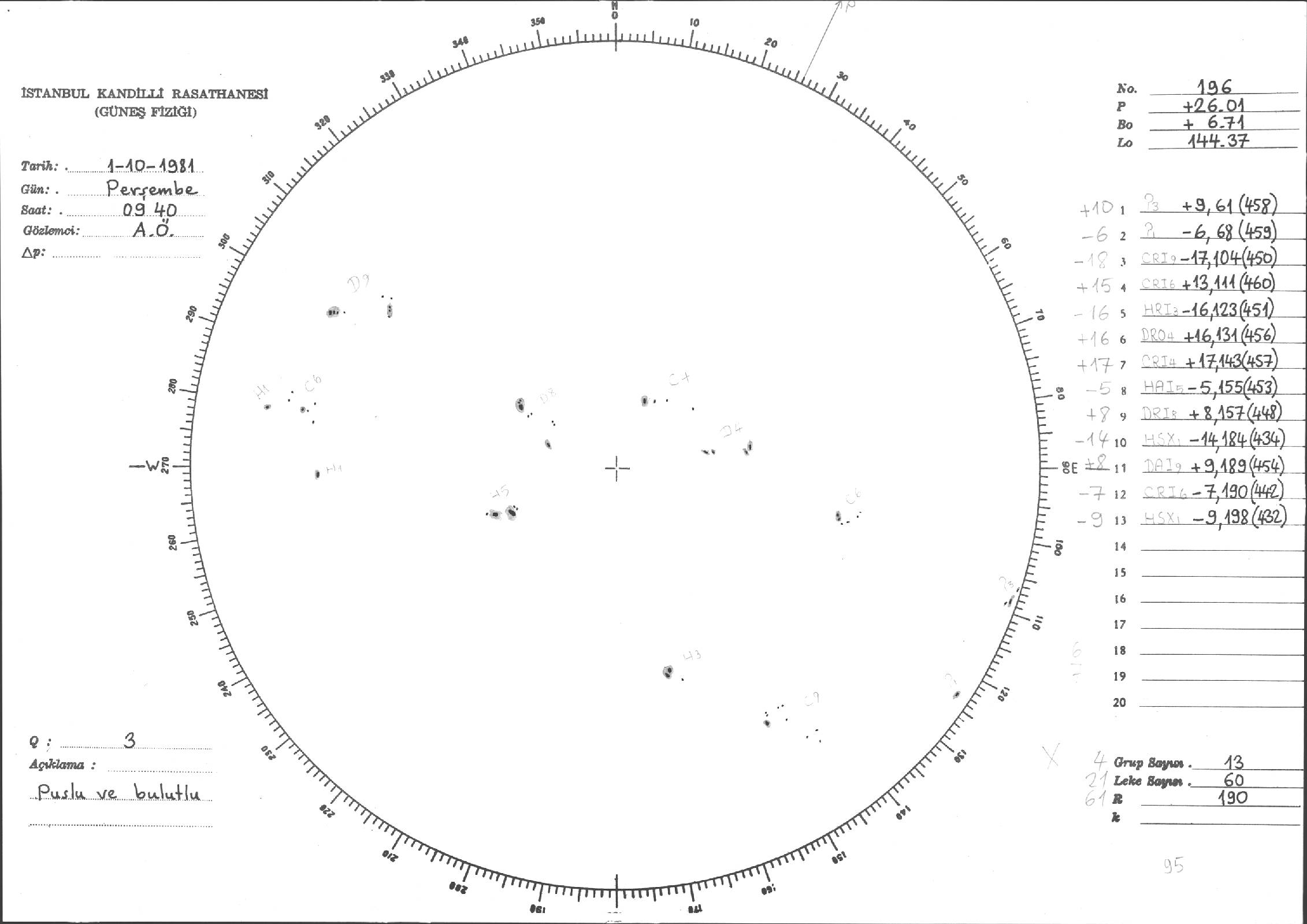 Güneş Lekesi Çizimi - 01.10.1981
