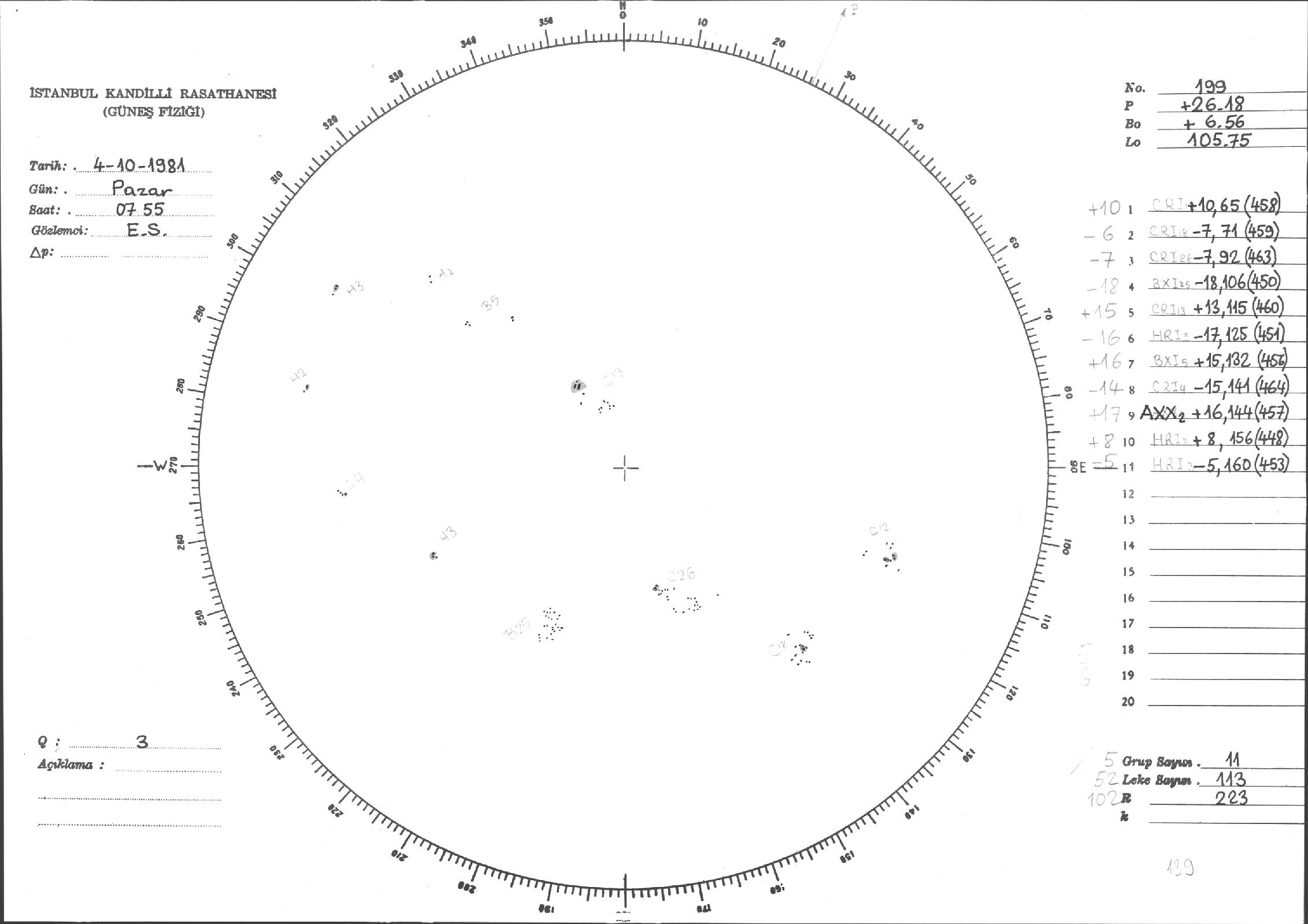 Güneş Lekesi Çizimi - 04.10.1981