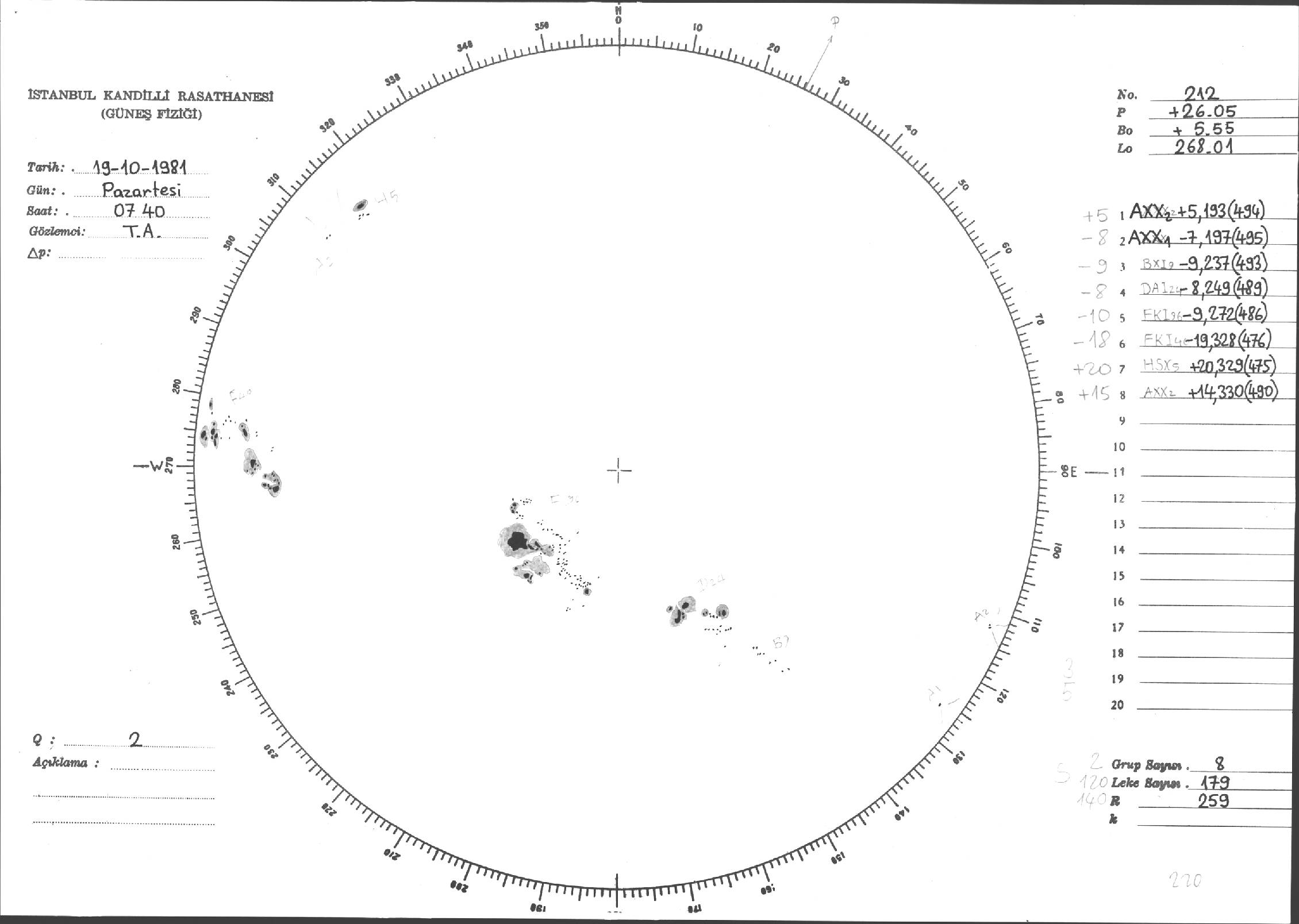 Güneş Lekesi Çizimi - 19.10.1981