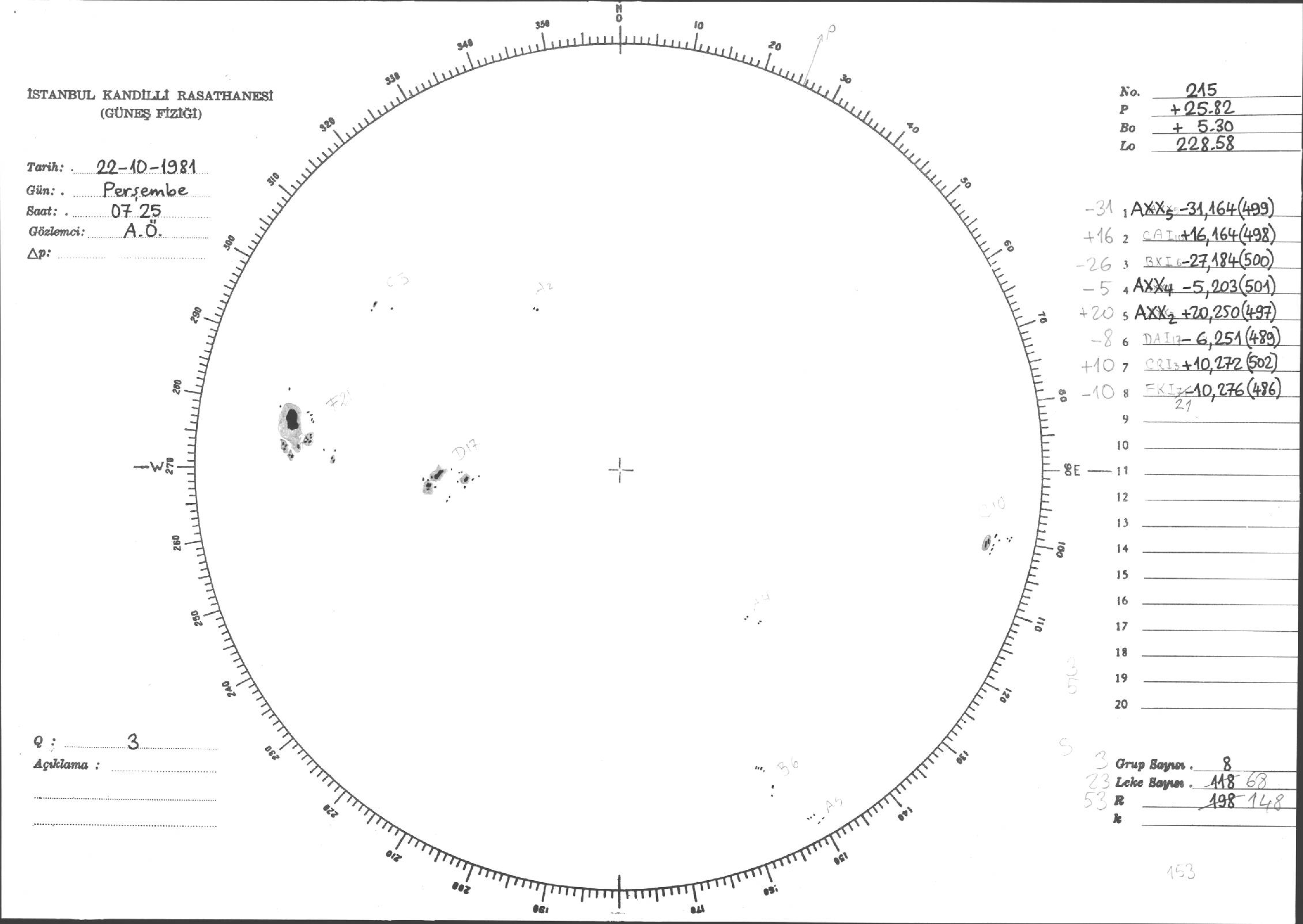 Güneş Lekesi Çizimi - 22.10.1981