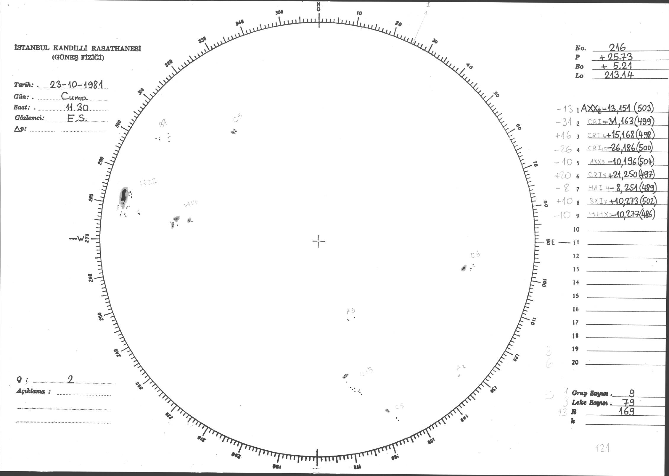 Güneş Lekesi Çizimi - 23.10.1981