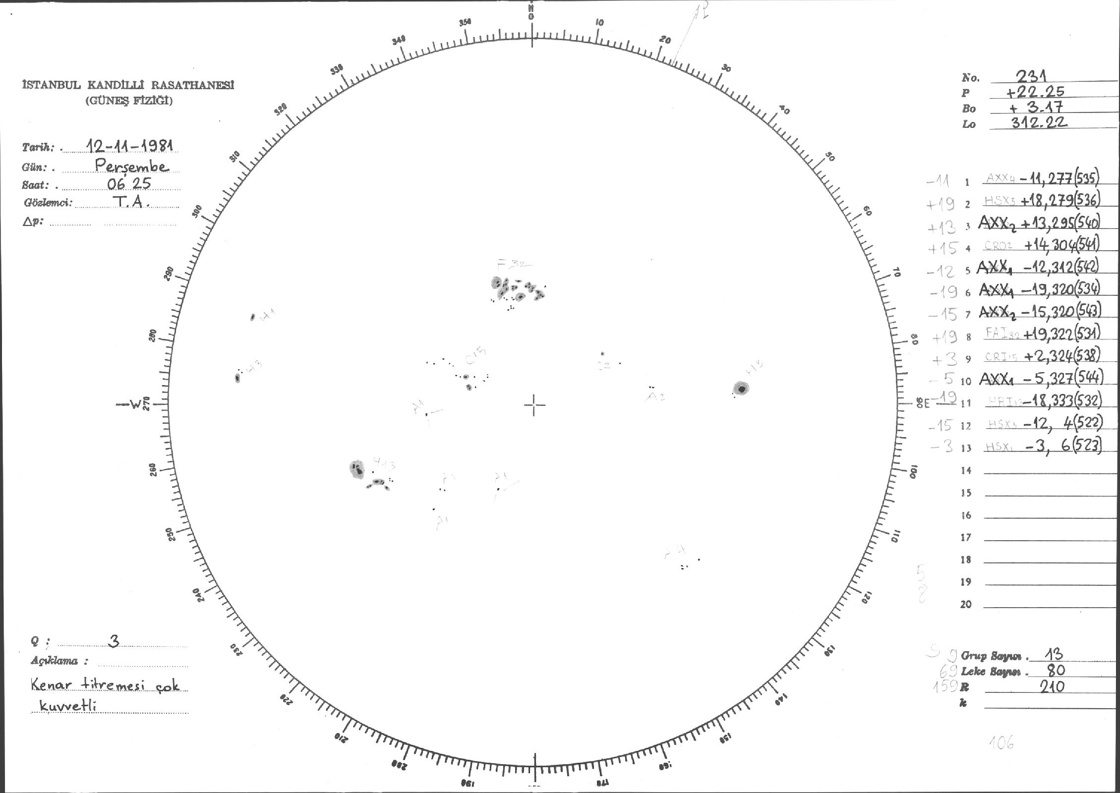 Güneş Lekesi Çizimi - 12.11.1981