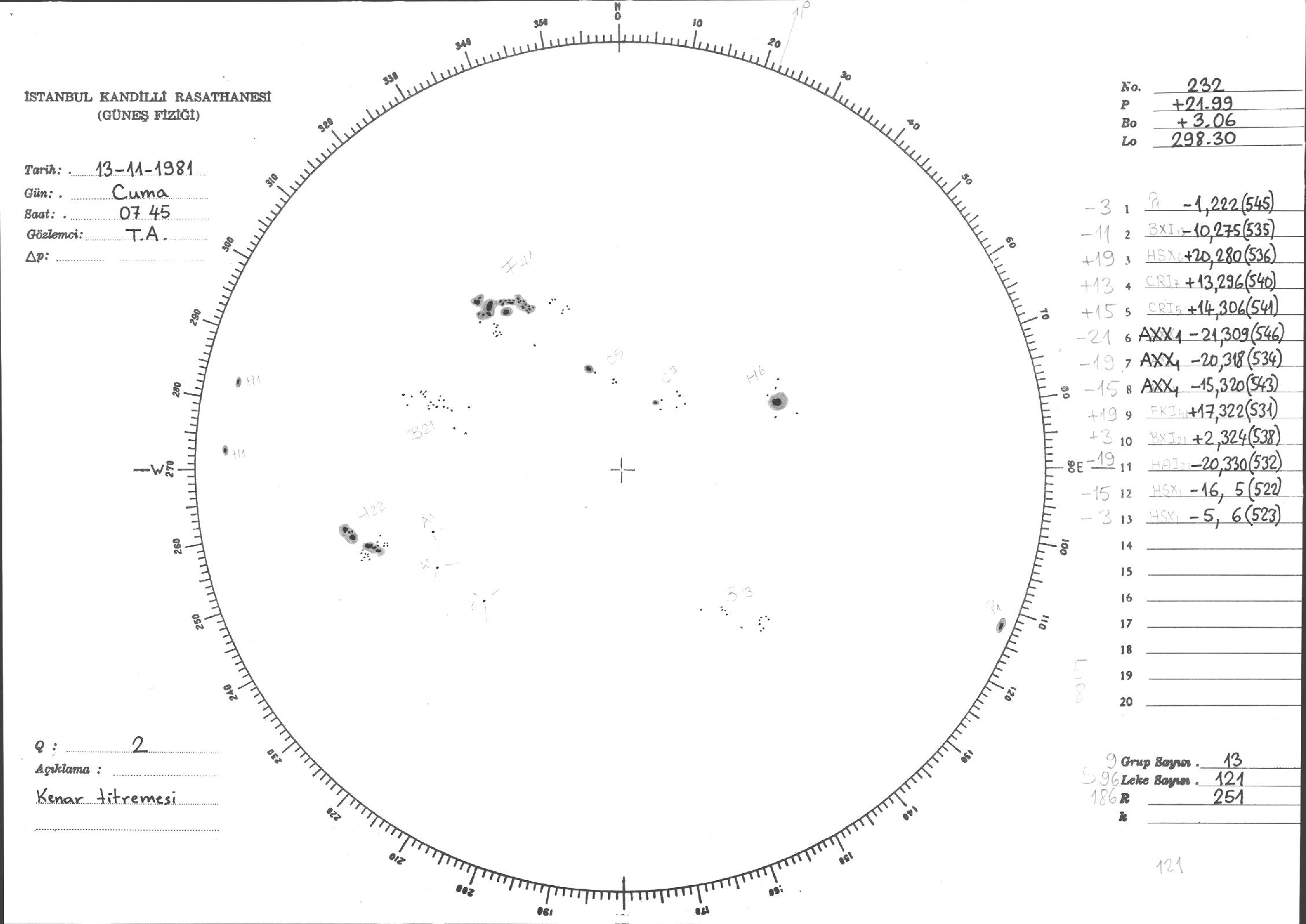 Güneş Lekesi Çizimi - 13.11.1981