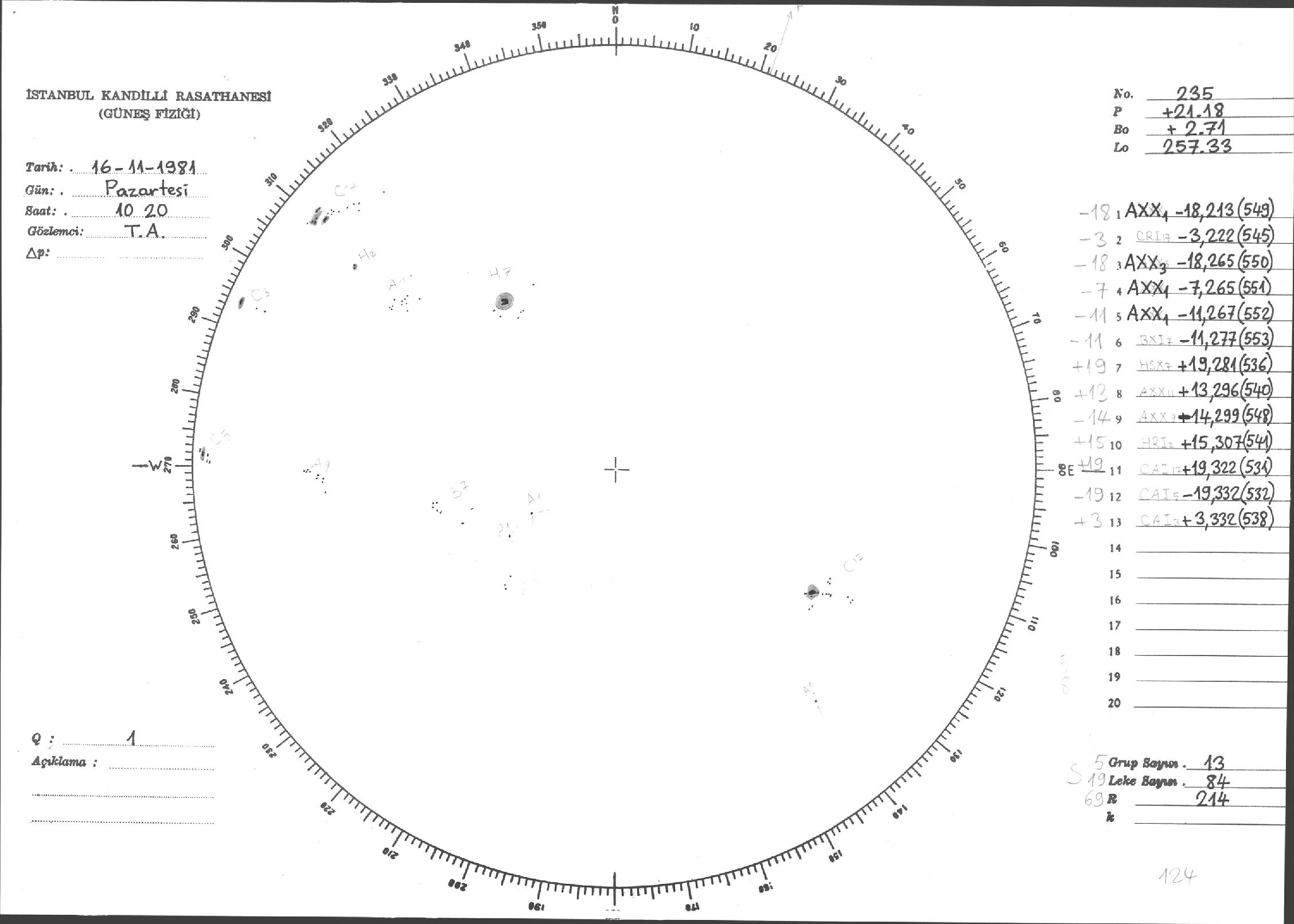 Güneş Lekesi Çizimi - 16.11.1981
