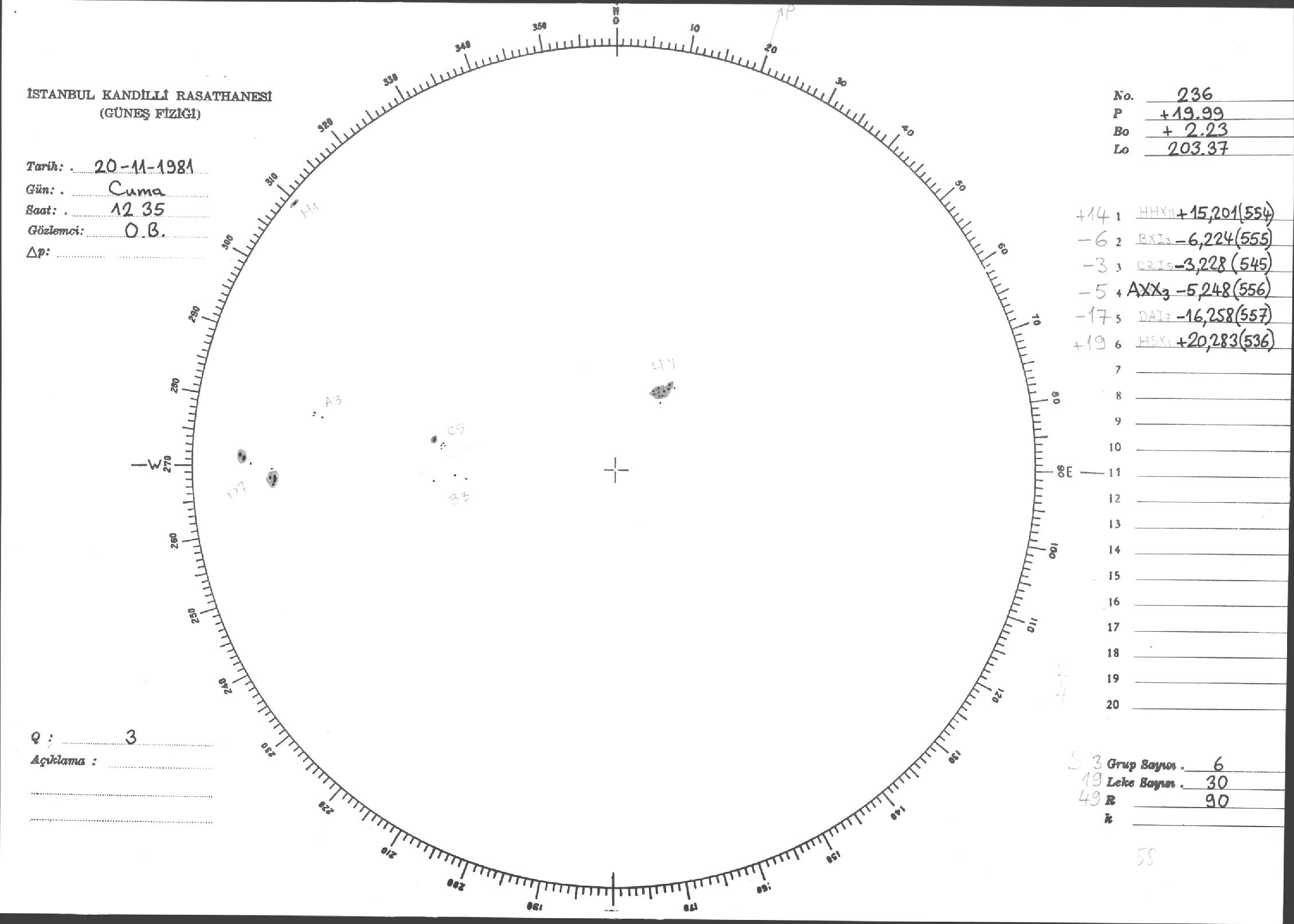 Güneş Lekesi Çizimi - 20.11.1981