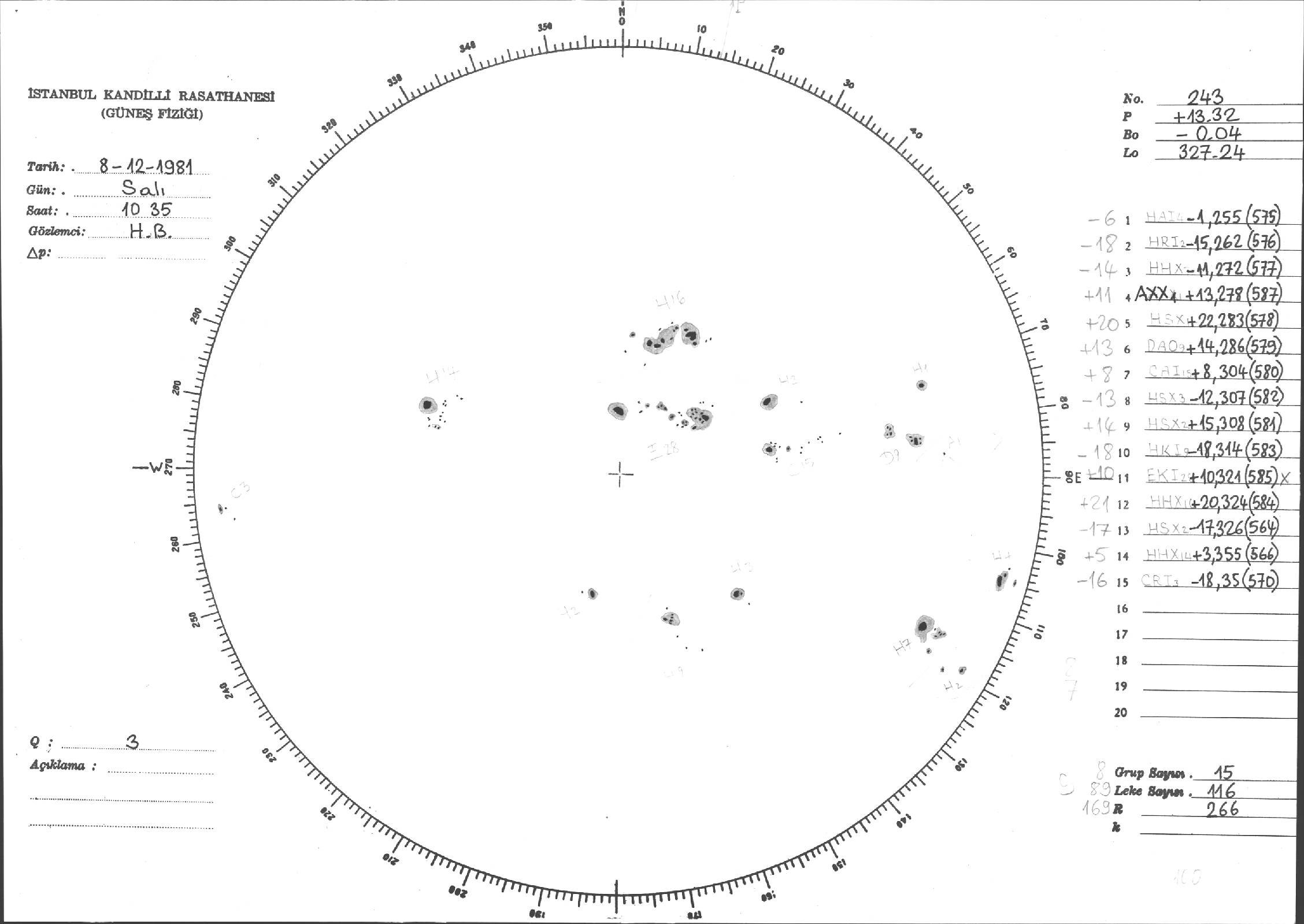 Güneş Lekesi Çizimi - 08.12.1981
