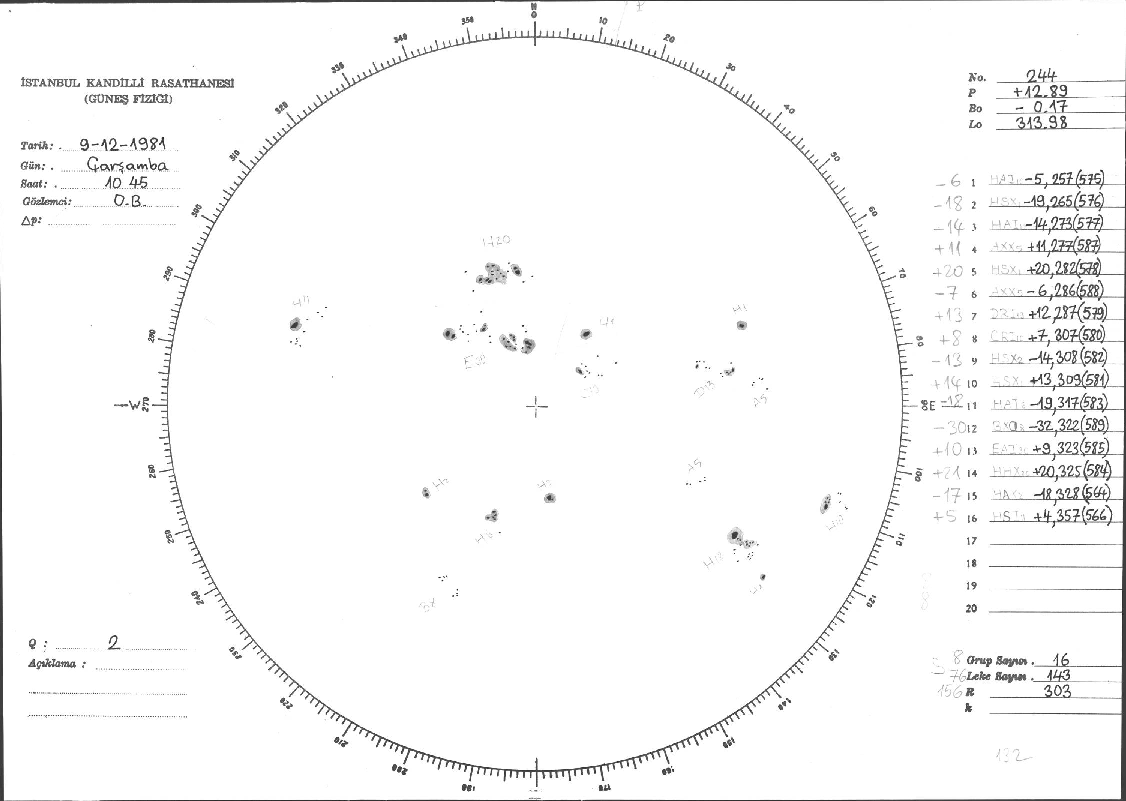 Güneş Lekesi Çizimi - 09.12.1981