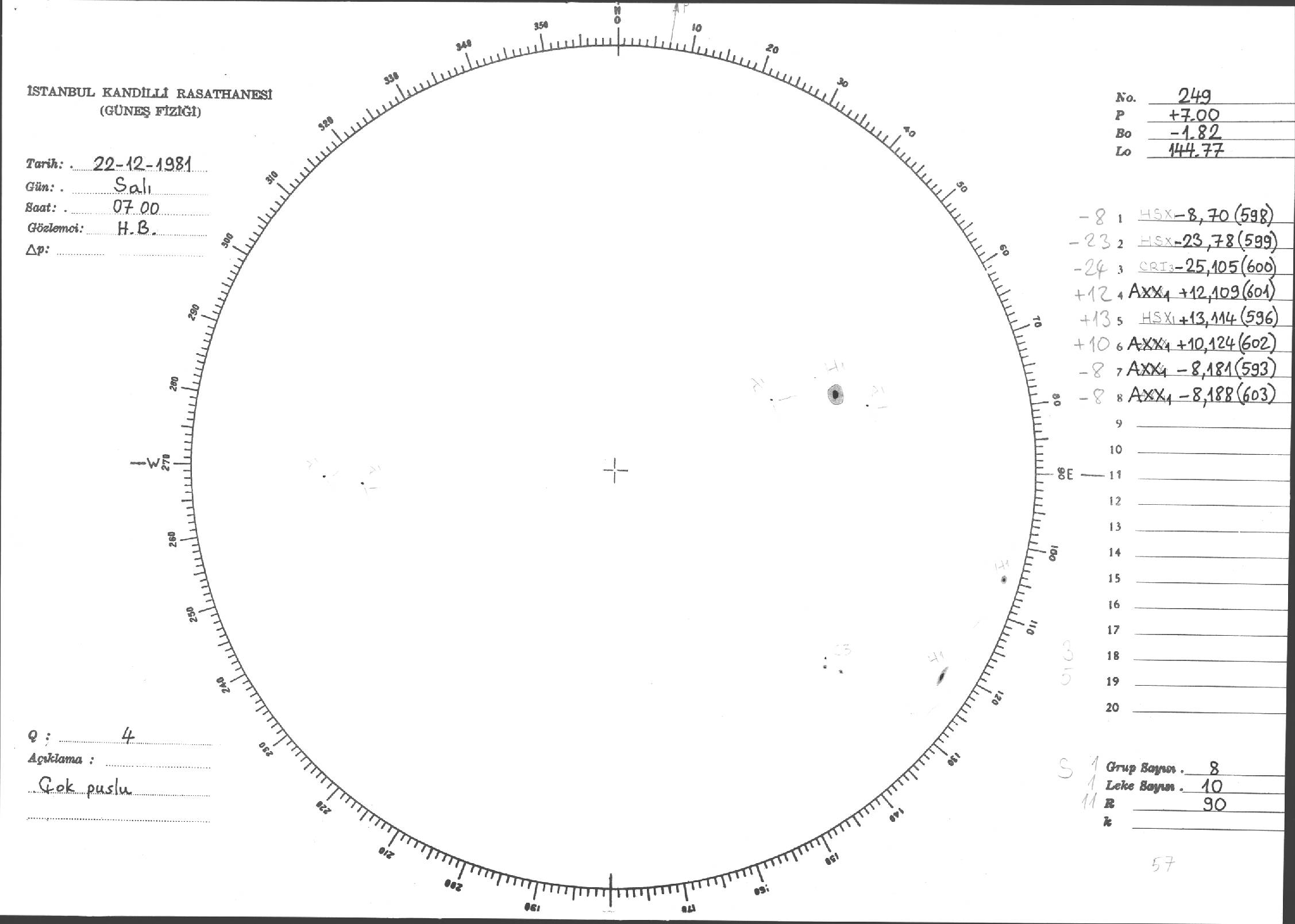 Güneş Lekesi Çizimi - 22.12.1981