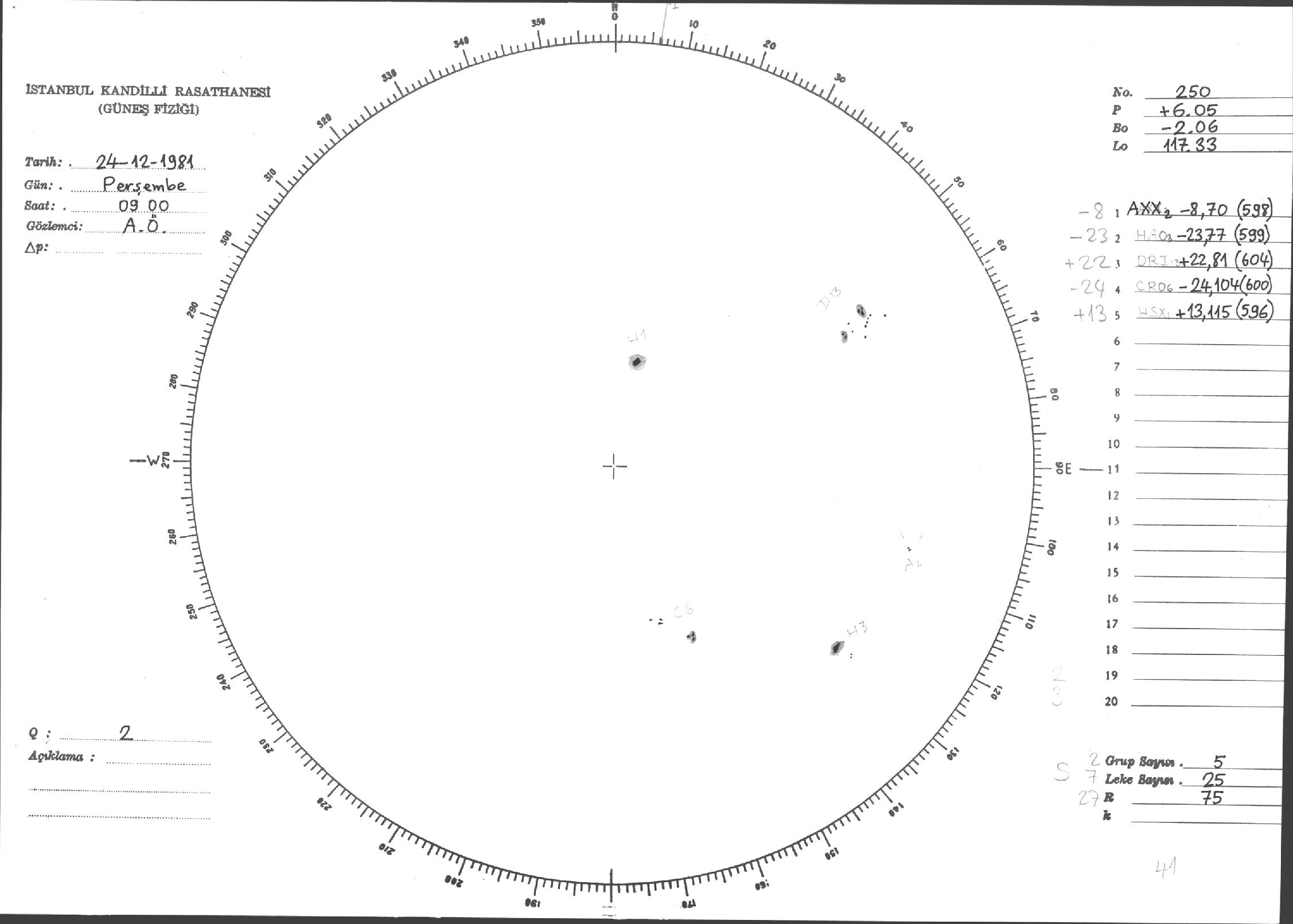 Güneş Lekesi Çizimi - 24.12.1981